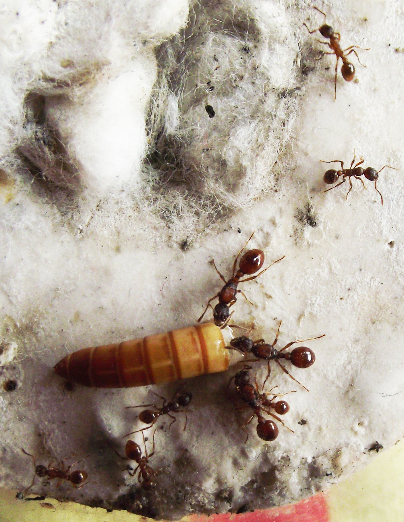 Si ho notato pure io, ma avendo solo piccole colonie ancora non riesco ad essere sicuro che sia cosi, in effetti quando metto il miele lo bevono in pochissimo tempo, e gli insetti li fanno in pezzettini e in mezza giornata sono già rimessi all'entrata della provetta come scarti! Le Lasius flavus invece lasciano molto più tempo l'inetto dove sta.