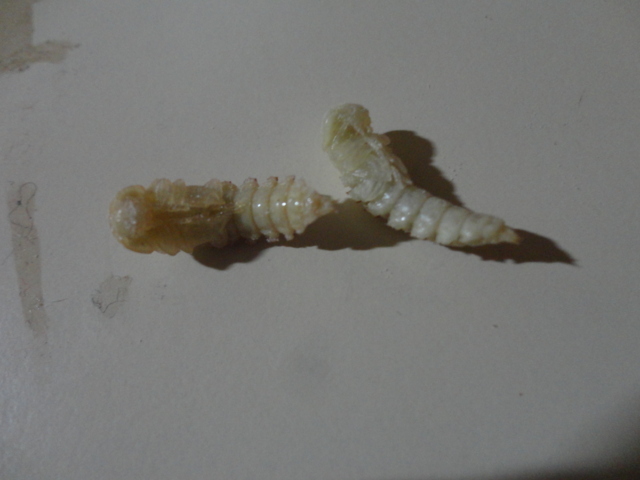 Bene ragazzi,era un po' che non notavo movimenti nell'allevamento delle camole ma ieri sono andato a controllare e ho trovato le prime due pupe!Sono bellissime,si muovono solo se prese in mano o toccate,le ho messe in un altro contenitore per evitare di essere sbranate dalle larve