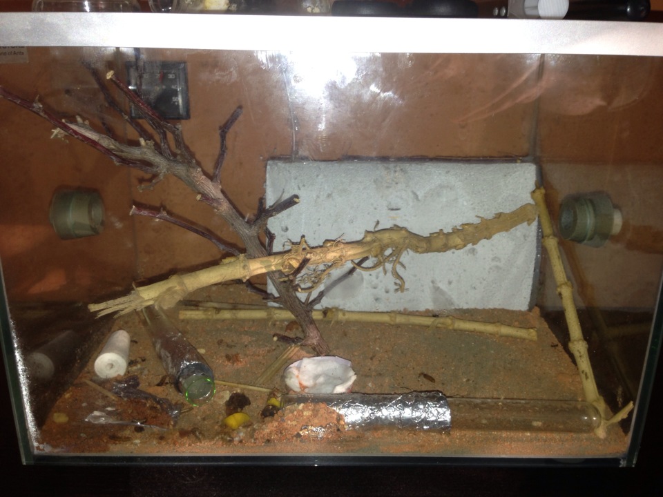 finalmente si sono trasferite dalla provetta al nido di gasbeton .......... forse da una decina di giorni ...... comunque l'importante e' che la colonia sia in ottima salute con un bel numero di operaie che si aggira intorno alle 20 unita' , 5 pupe e 2 larve , stasera cerco di vedere se ci sono uova ......