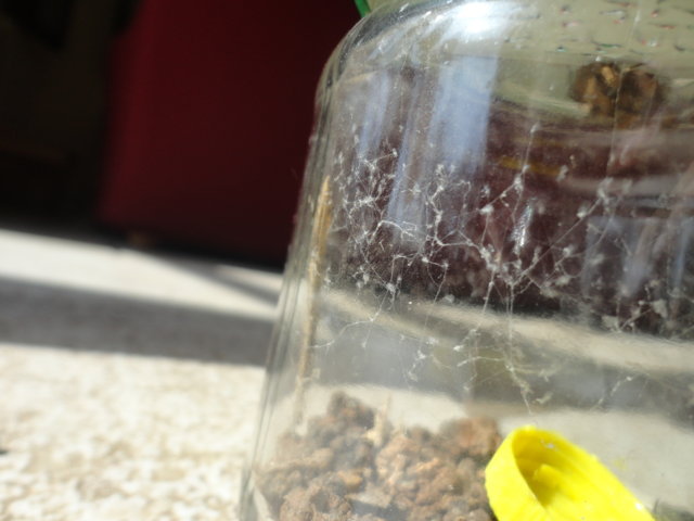 .Ho notato che aveva fatto la tela nel barattolo in cui la avevo momentaneamente messa,a volte la tela presentava dei pallini,non è che sono uova no??Generalmente non fanno l'ovisacco o ci sono altri metodi che usano per deporre le uova?In ogni caso la ho messa su una traversa di legno a pochi metri dal luogo in cui la trovai,qui troverà cibo a volontà e spero che starà bene.Le ultime due foto sono della liberazione del ragno mentre le prime tre sono della tela.Grazie ancora a tutti In fondazione: