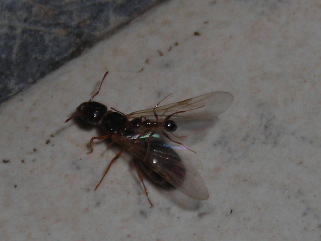 Ho preso un paio di regine ancora alate ma che già avevano perso la capacità di svolazzare perchè non sono sicuro che riuscirò a beccarne di dealate. Non so quanto una sciamatura in una stanza bassa 1,90 m possa essere efficace per la riproduzione e quindi non so se di regine feconde che si dealano ce ne saranno. Specie molto piccola, sciamano come moscerini, forse possono farlo anche lì