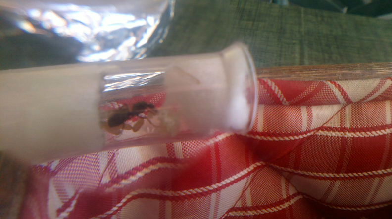 la serviformica ha una covata di 16 larve che stanno avendo uno sviluppo velocissimo, 4 di loro superano già i 2mm quasi 3 mentre anche una Lasius ancora alata raccolta lo stesso giorno Nel corridoio a scuola ha appena deposto un bel gruzzoletto di uova...tutte e 2 ancora alate 0.o