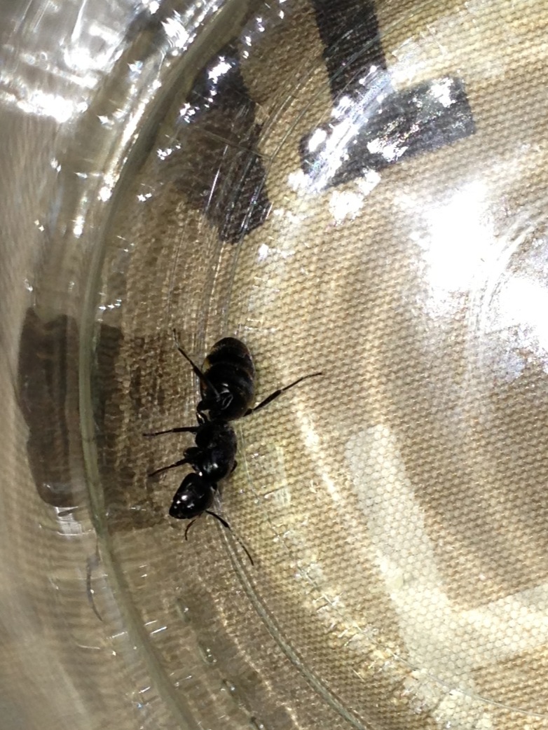 Se le dimensioni sono queste... Allora proprio Camponotus vagus. Il guaio è che è palesemente una regina sciamata da tempo e con alte probabilità che già avesse deposto da qualche parte. L'indizio principale è la dilatazione gastrica che fa vedere bene la membrana chiara tra tergiti e sterniti. Queste regine lo fanno iniziata la deposizione e non prima (notato su varie regine). Dove la hai trovata (tipo in un pezzo di legno, in un tronco, sotto una corteccia, a volte sotto un sasso) avresti dovuto trovare e prelevare anche la covata. Se non lo hai fatto alla regina potrebbero mancare energie per una nuova deposizione. Non è detto. Improvettala e vedi se depone. Se non lo fa entro una settimana è il caso di iniziare a darle nutrimento proteico per permetterle di avere nuove energie per deporre.
