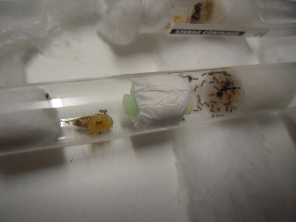 Sì ma lo avevo capito ancora prima! L'unica cosa che mi preoccupava era la dimensione della provetta... ogni quanto e con cosa vanno nutrite le prime operaie?