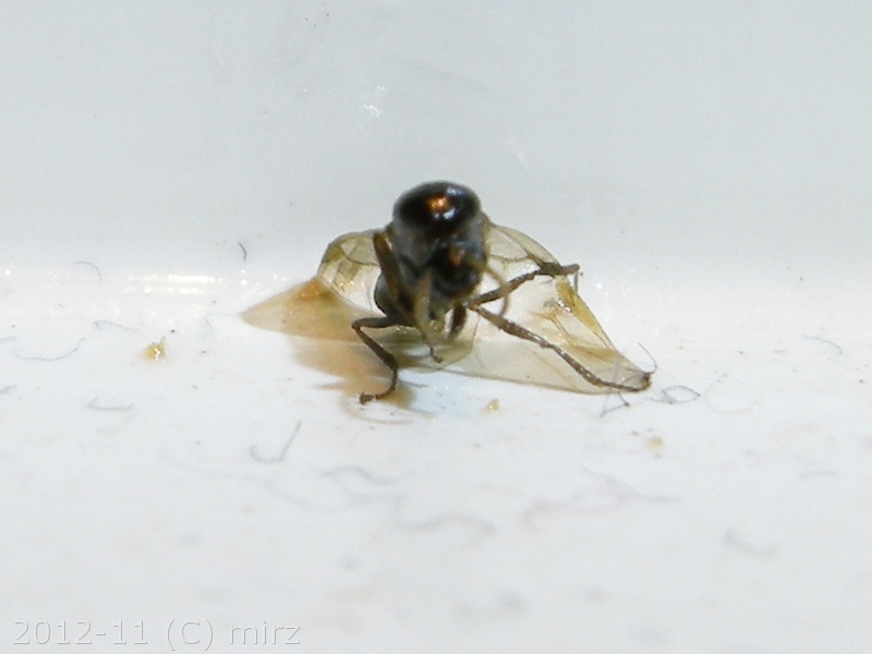 E poi, c'è una cosa curiosa e degna di nota, che non avevo mai visto o letto da altre esperienze; nei post precedenti di questo diario, riportavo la scoperta di tre maschi. Bene, questi tre, nell'ultimo mese, in tre momenti diversi hanno sentito il richiamo della natura ed hanno avuto l'impellenza di sciamare. Ebbene, tutti e tre, ripeto, a distanza di alcuni giorni, hanno terminato la loro esistenza rimanendo attaccati con le ali all'antifuga.
