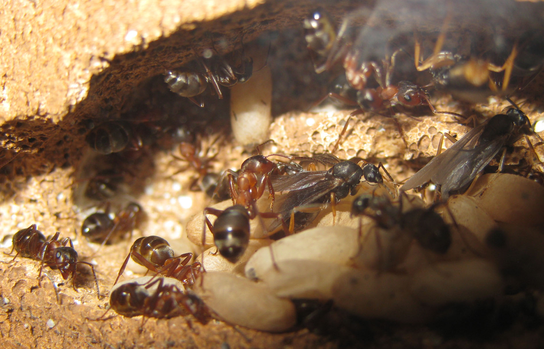 Come anche l'anno scorso, sono nati dei maschi alati, di cui alcuni sono stati mangiati ancora allo stadio di pupa.