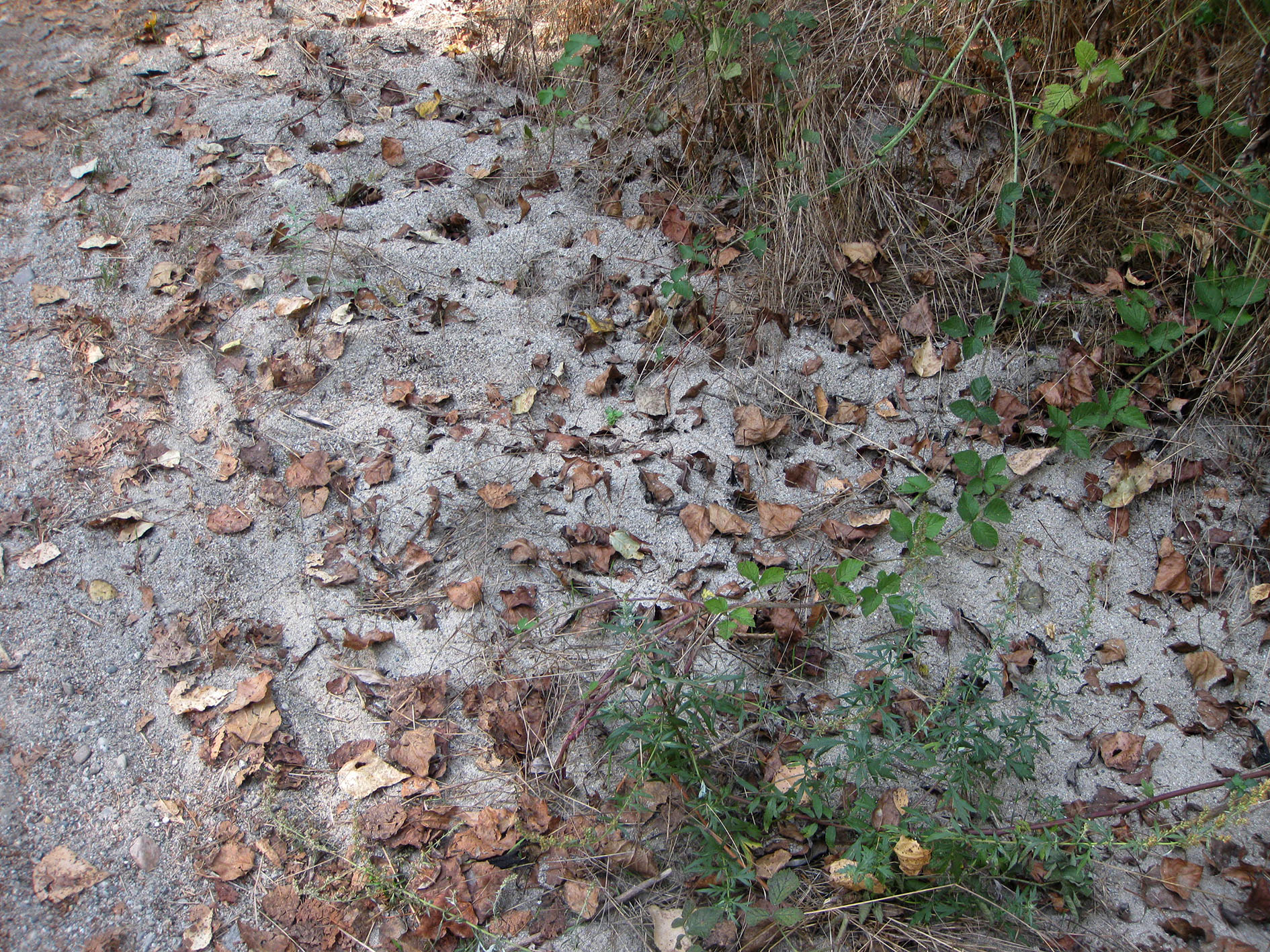 Nel pomeriggio, durante una visita al parco del Ticino, sono riuscito a rinvenire un grosso nido di Formica cinerea. Questa volta ho avuto modo di misurarlo e osservarlo per bene, ed è ancor più chiaro perché Rigato mi disse che Formica cinerea non è normalmente usata come bersaglio di Polyergus, né potrebbe esserlo di F. sanguinea.