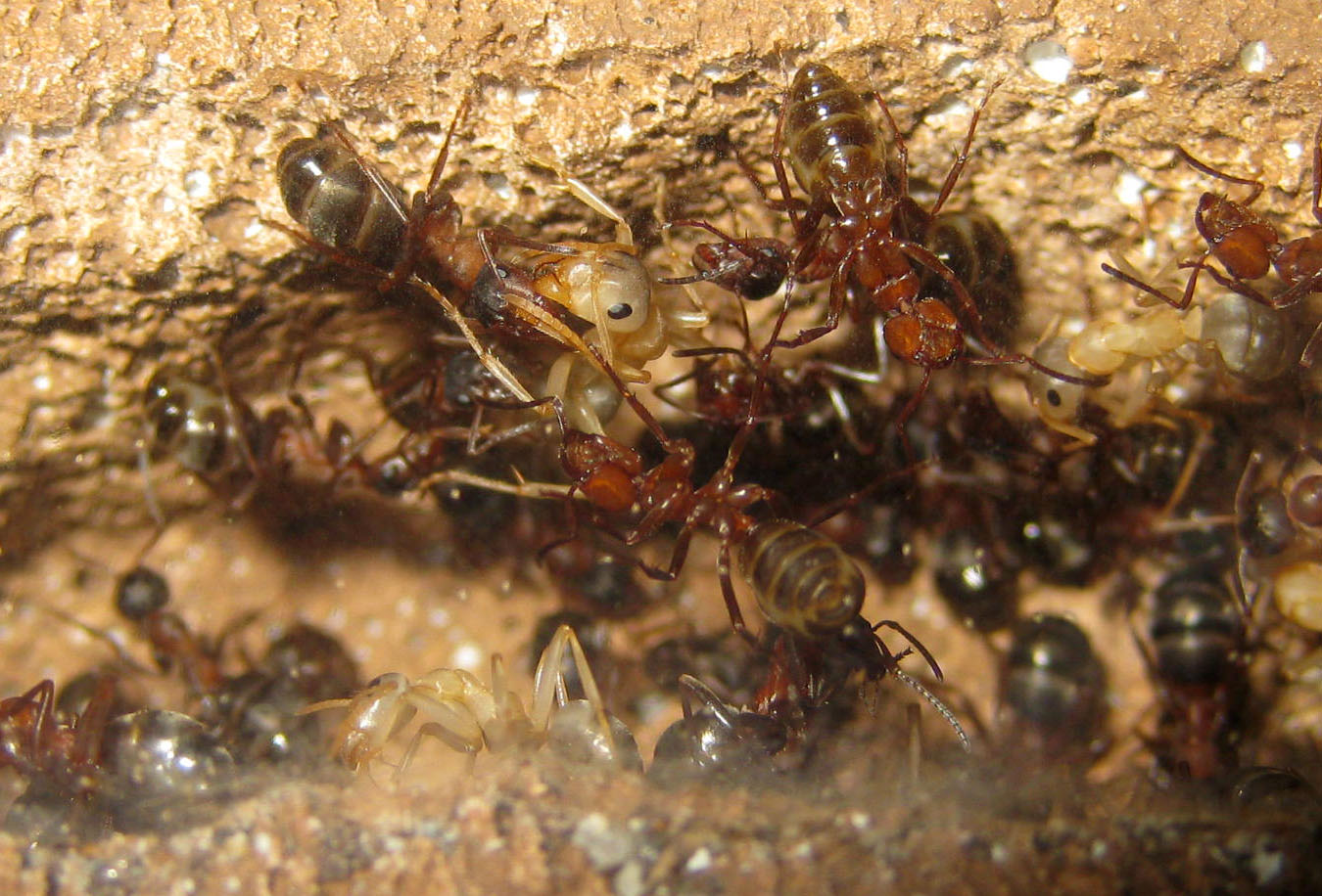 Adesso le figlie effettive sono forse 1000-15000. Alcune stanze del capace nido sono state adibite a deposito scorie di ogni tipo, e ho riscontrato delle preferenze nella scelta delle camere dove impupare le larve, dove vengono smembrate le prede, o dove la regina va a deporre.