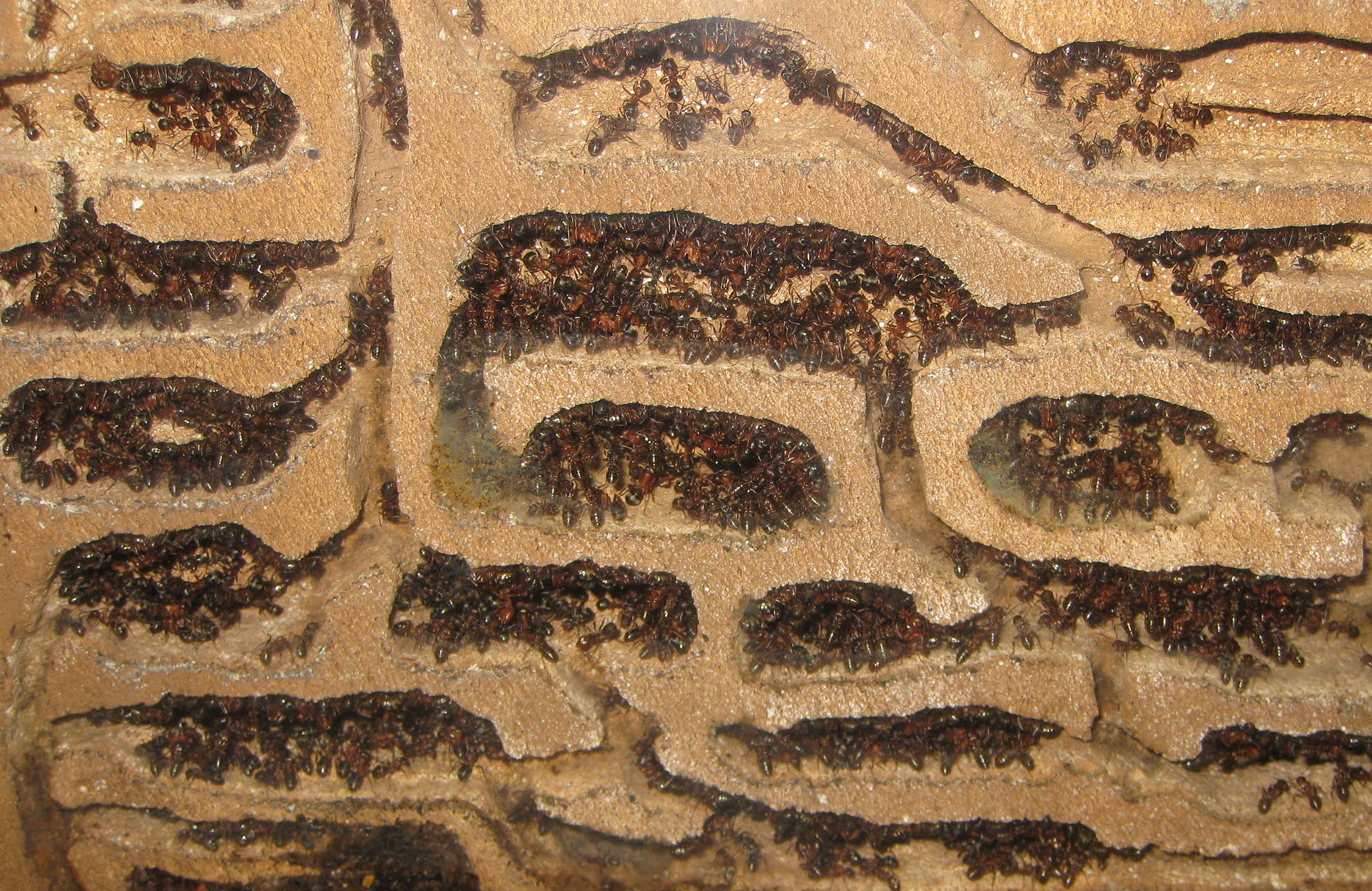 Il nido in questione era circa 3 metri di estensione x 1 in larghezza, con decine di uscite pattugliate, e tutto il terreno intorno era presidiato dalle sue pattuglie. Nessuna colonna di amazzoni potrebbe attaccare impunita un simile nido senza venire a sua volta accerchiata. Le formiche si sono dimostrate estremamente aggressive e hanno difeso la mia invasione coraggiosamente.