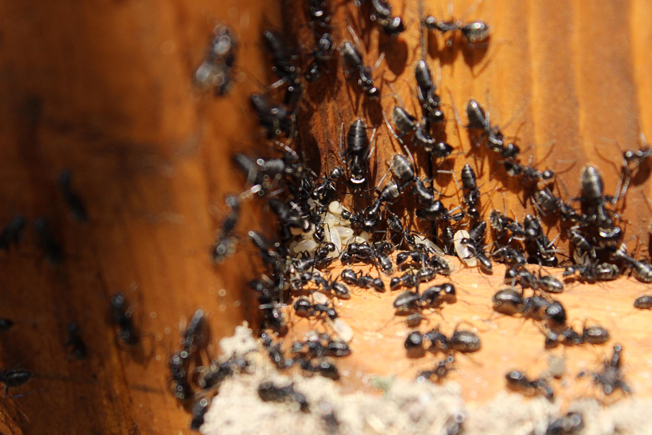 Considerate che questa specie è una formica carpentiera...in pratica buca il legno come fosse burro (anche quello più stagionato e duro). Spesso sembra farlo anche solo per "svago"...mentre altre volte usa depandance nel legno come solarium e stanze di incubazione.