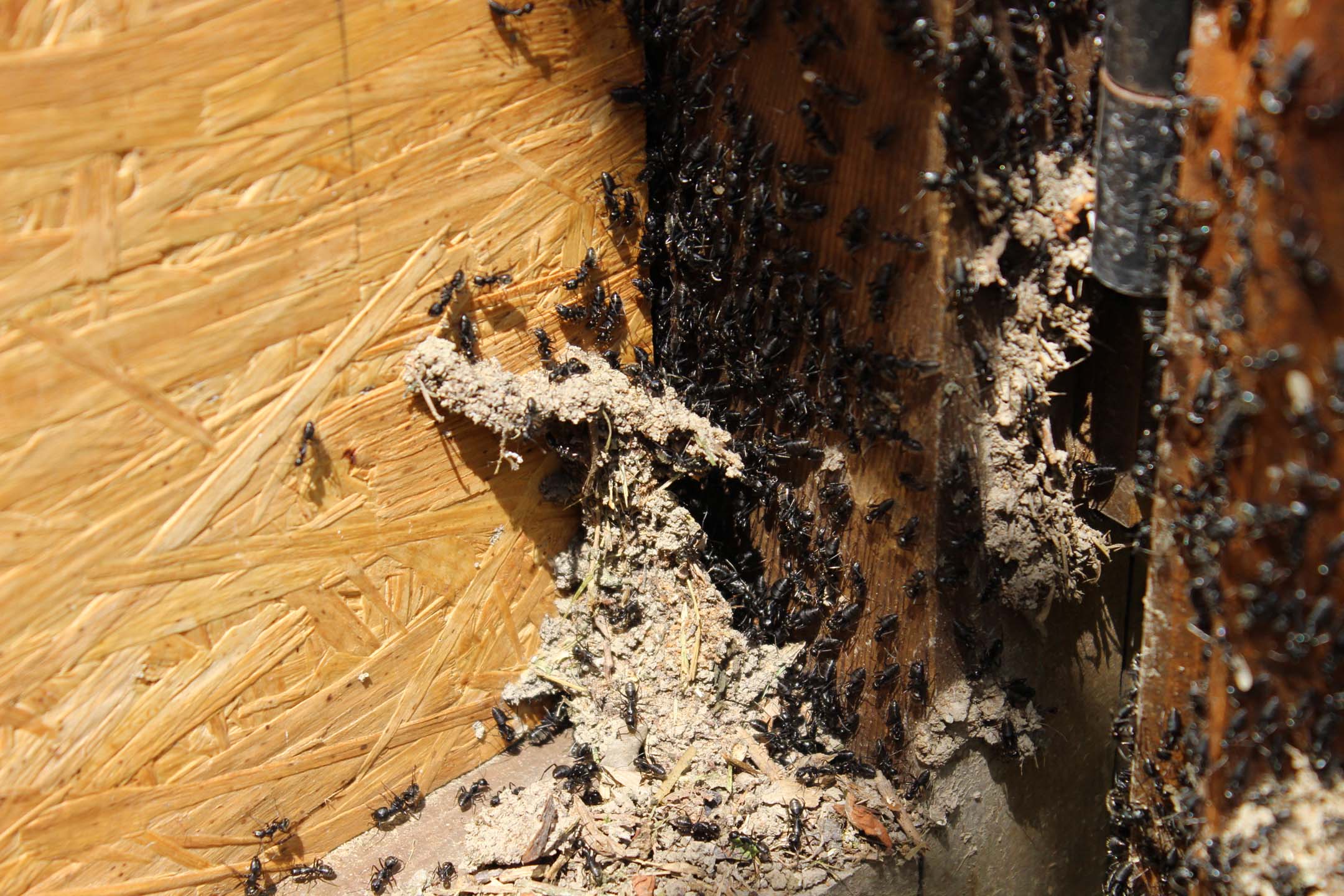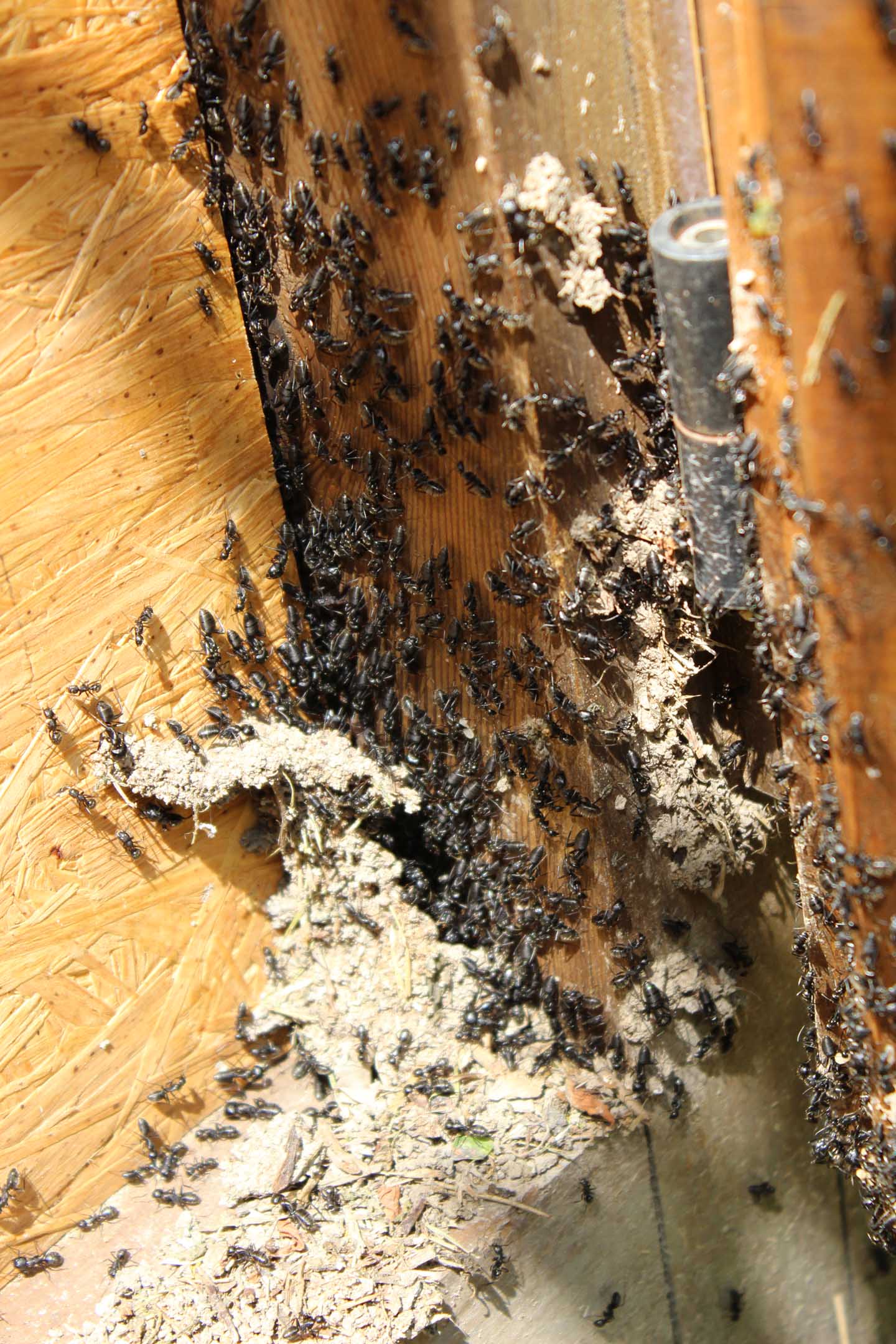 ed ecco alcuni dei danni che la colonia sta iniziando a creare portando terra nella bacheca, scavando le colonne portanti ed allargando buchi nel legno!!!