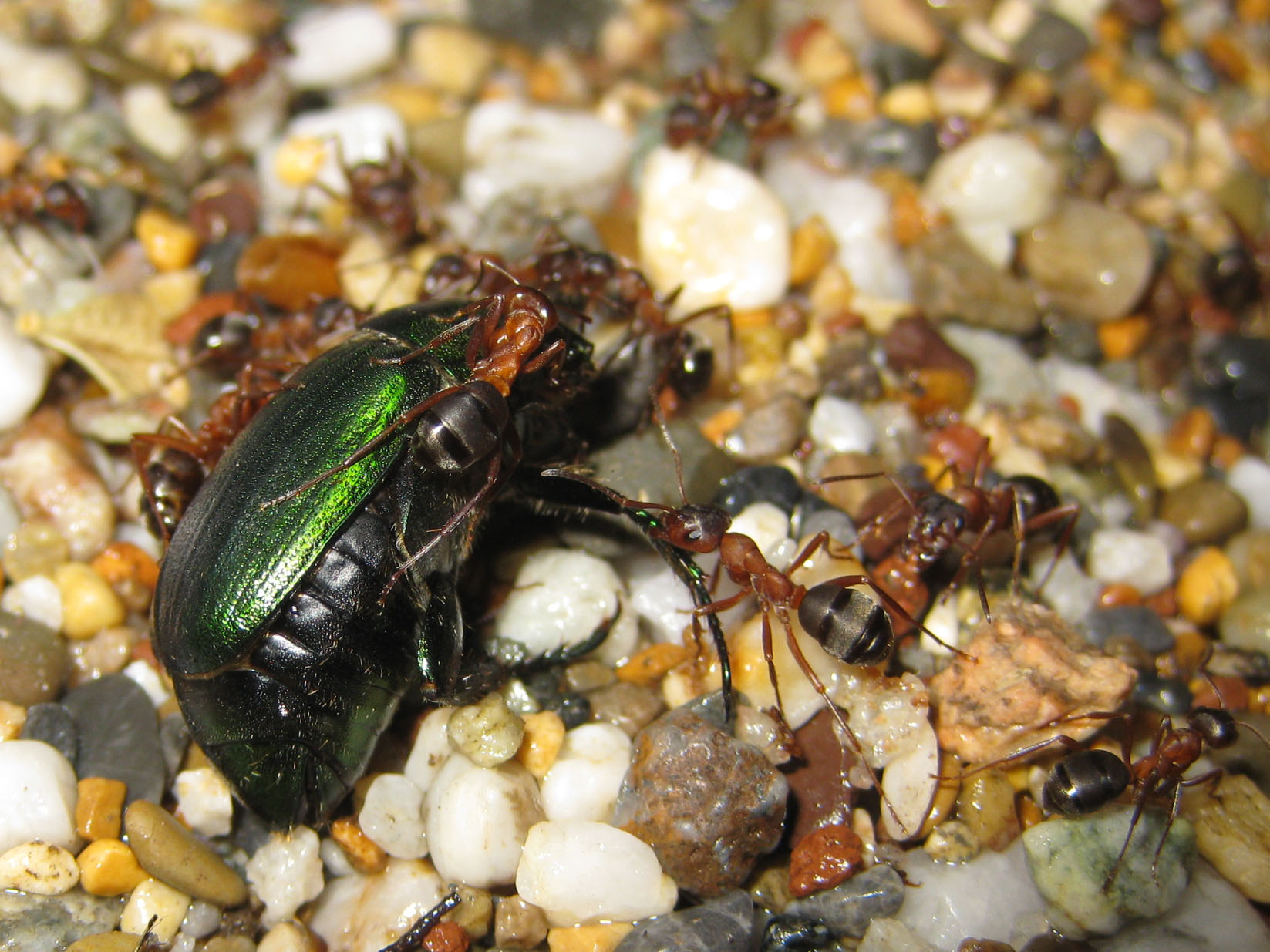 Ho trovato questo coleottero morto e ho provato a darlo in pasto alla colonia. Si sa che gli insetti corazzati non sono graditi da molte formiche, che non riescono ad accedere all'interno (con le dovute eccezioni! Questa è una!).