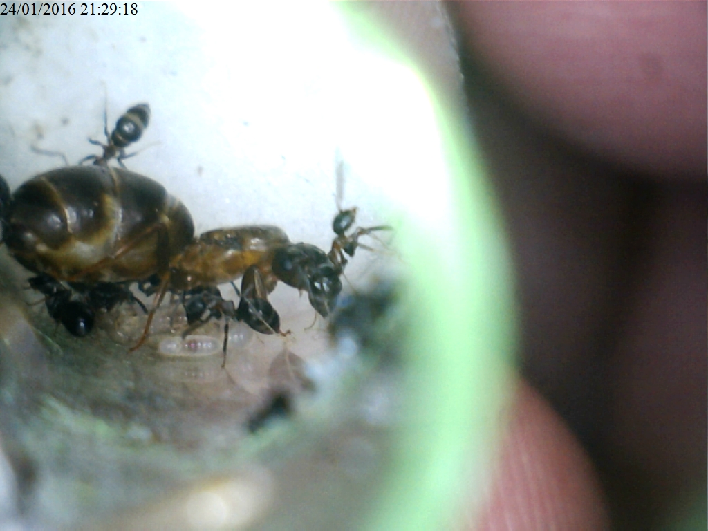 Oggi, finalmente, inizio il diario anche di questa specie. Purtroppo, non hanno fondato velocemente come mi aspettavo, ma adesso sono piene di larve e pupe!