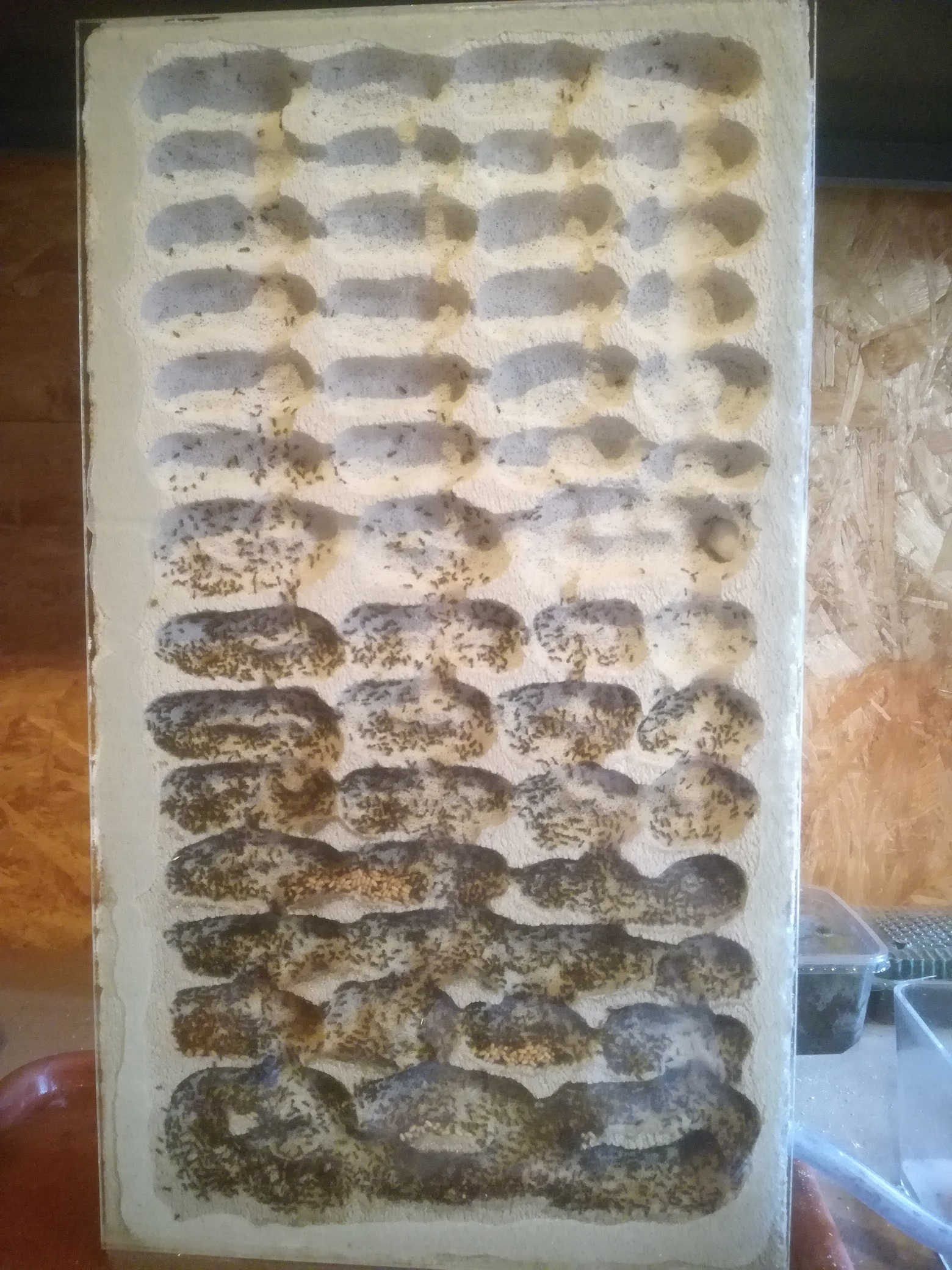 A partire da Aprile la regina ha iniziato a deporre una quantità di uova smisurata, che in breve tempo si sono sviluppate dando alla luce molte operaie, tuttora non sembra intenzionata a smettere e continua a deporre mandate di uova impressionanti, sono molto soddisfatto.