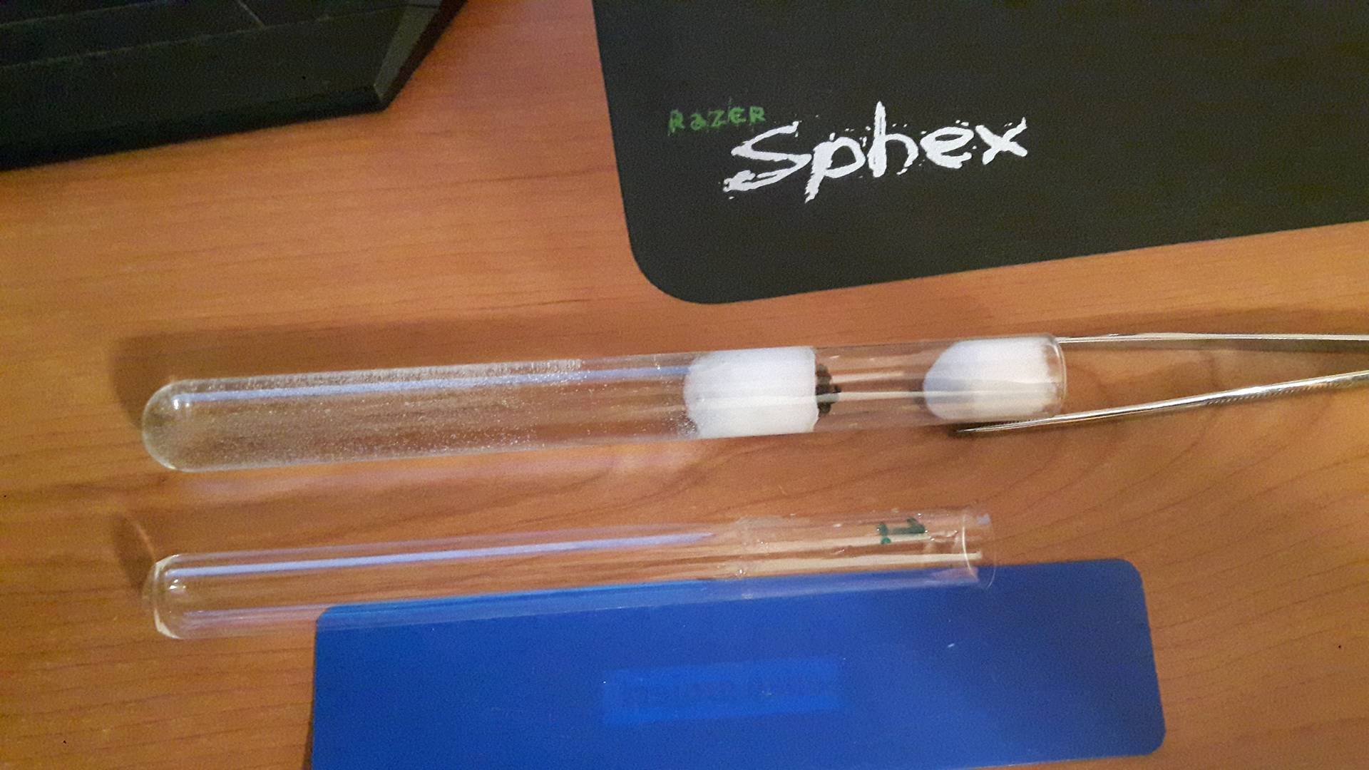 Le 3 sono state poste in provetta, per ovviare al problema dell'esaurimento precoce della riserva d'acqua e fornirgli, nello stesso momento, maggior spazio, ho utilizzato un provettone di lunghezza 180 mm x 16 mm di diametro.