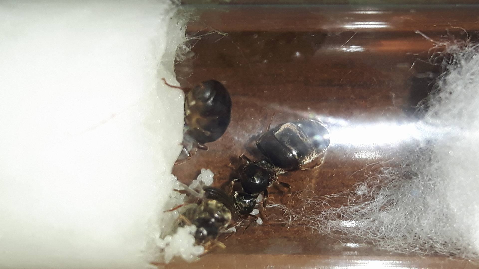 Le 3 regine stanno benone, hanno deposto dei bei mucchietti di uova, dai quali non si allontanano mai.