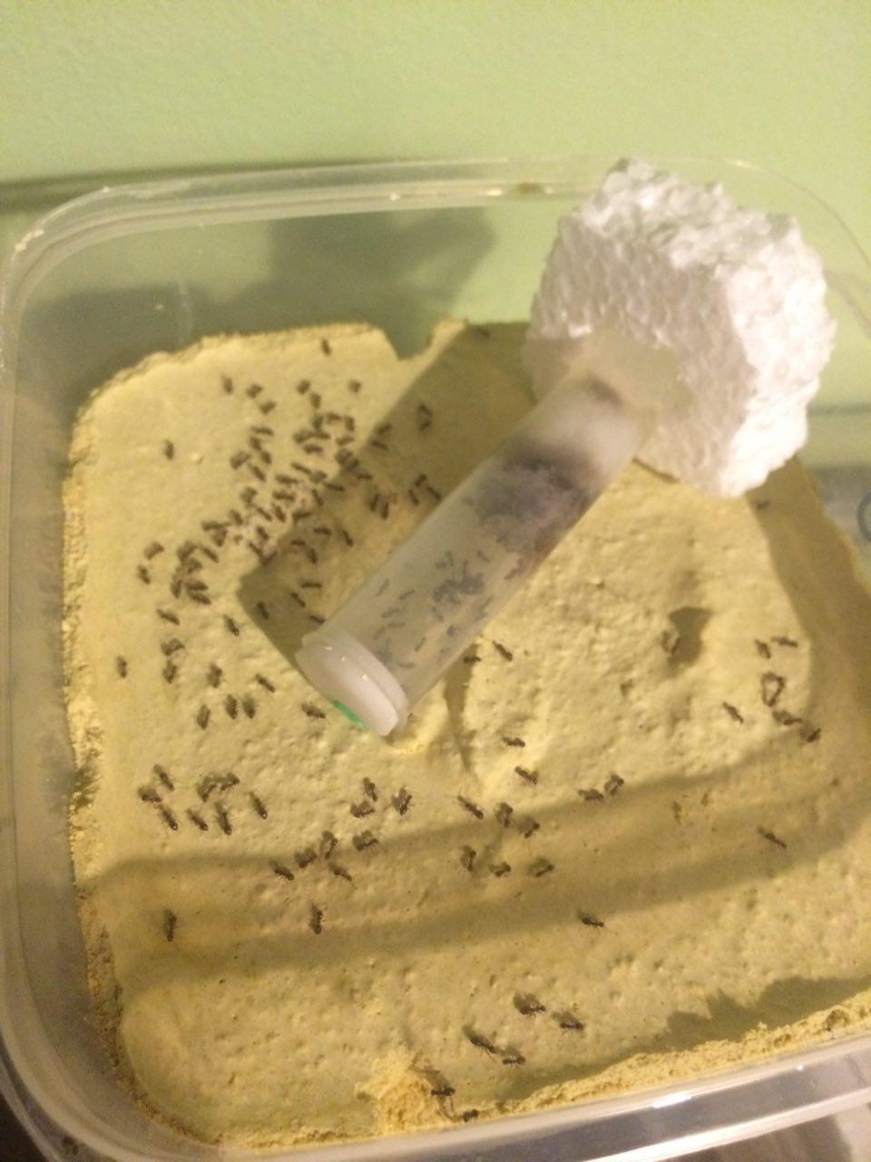 Ciò mi ha costretto a ricorrere a metodi più severi di contenimento, così ho usato lo stesso olio che ha svolto funzione di antifuga per tutti questi mesi, spennellandolo sul lato esterno del nido provocando successivamente la morte di una sventurata formichina annegataci.