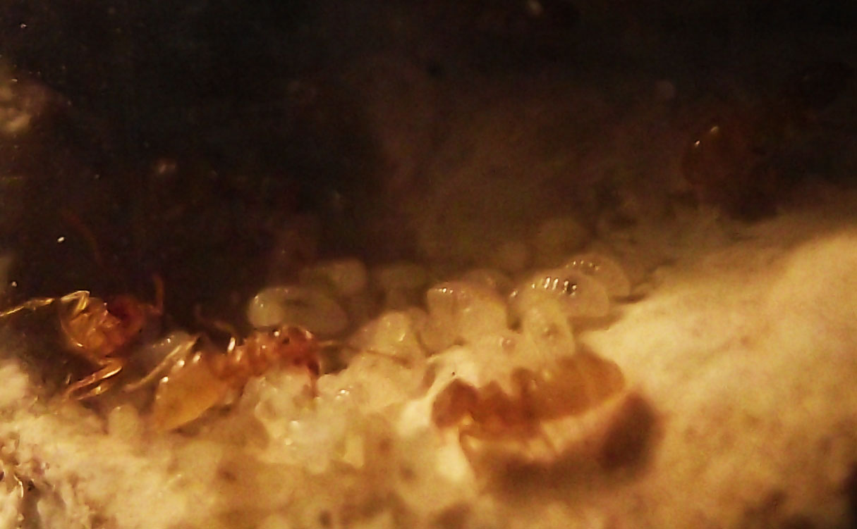 Le uova nuove sono aumentate saranno 30-40 penso. mi consigliavano di toglierle dal formicaio per il trasloco, ma non ho provette libere...penso che tappero' l'ingresso del formicaio con cotone e mettero' un tappo grosso di cotone in arena che blocchi il gesso, tutto trattenuto da nastro adesivo, speriamo basti!