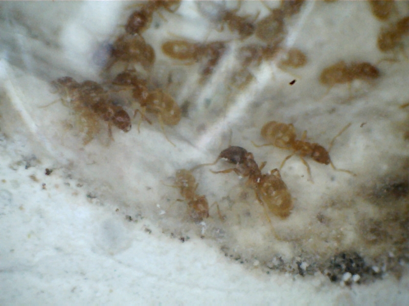 . Altra cosa che potresti notare usando il microscopio USB e che dovrebbe essere facile da osservare è se le operaie che dici con capo scuro hanno gli stessi occhiettini minuscoli delle altre. Dalla foto vedo benissimo che le operaie con testa gialla hanno questi occhietti minuscoli tipici di Cautolasius, ma non riesco a vedere a causa del colore gli occhi di quelle con capo più scuro. Il controllo per te dovrebbe essere facile