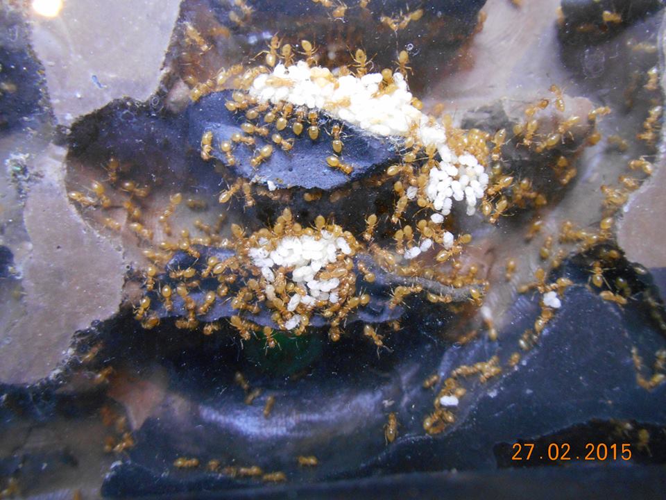 2016-02-26 - Trovato buco da dove uscivano le operaie e tappato con "cemento per dentisti" La colonia ha molte larve e a giorni colleghero' il formicaio con quello dell'altra colonia di "umbratus" ormai libero.