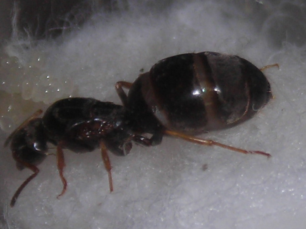 Questo diario parla di una regina, in particolare di una Lasius sp. all'inizio avevamo un dubbio nell'identifica ma con il gastro più dilatato si notano meglio i 5 segmenti sul gastro, oggi la regina ha 15-16 uova e forse una larvettina, che in mezzo a tutti quei pallini bianchi è difficile riconoscerla