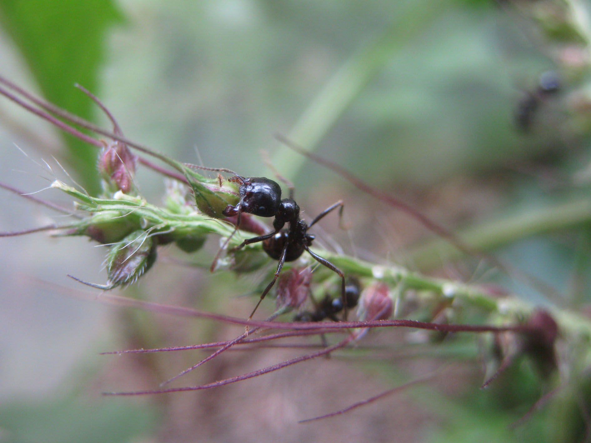Se prestate attenzione, noterete qua e là il tipico atteggiamento di mettersi quasi in posizione pupale delle operaie, prima di raccogliere un seme. E' stato ipotizzato che questo movimento fosse associato al fatto che le formiche cospargono il seme di una sostanza atta ad ammorbidirlo e facilitare il trasporto.