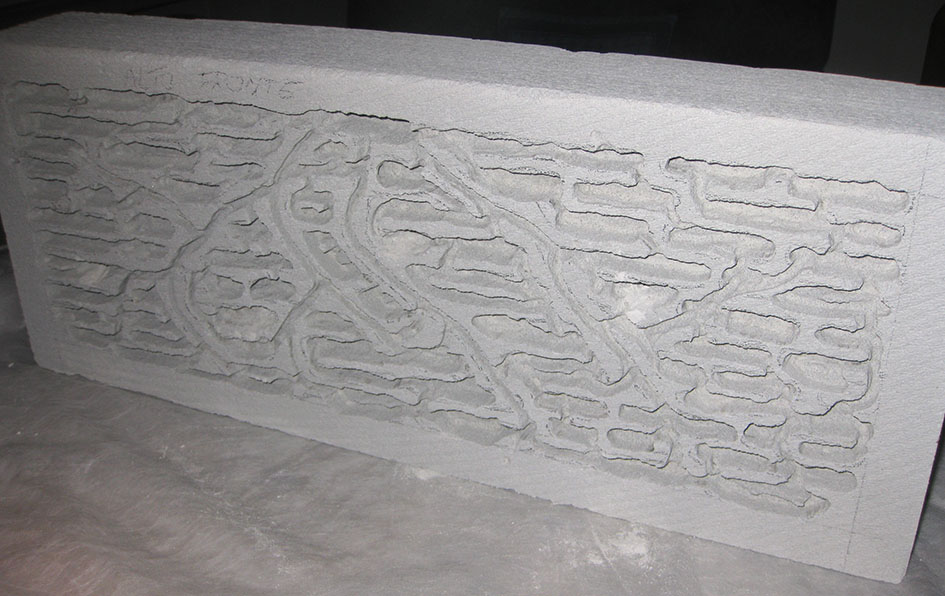 La presenza di due facciate rende già il nido particolarmente soggetto a sbalzi interni di temperatura e umidità. Questo è inevitabile, purtroppo. L’umidificazione dovrà essere accuratamente dosata anche perché sorgerà un secondo problema: la copertura totale della superficie e la sua conseguente colorazione su tutte le facciate renderà difficile riscontrare il cambio di consistenza del gasbeton bagnato/asciutto. Inoltre, essendo il modello finale incassato in una “vasca” di materiale non traspirante, la traspirazione del gasbeton sarà notevolmente rallentata.