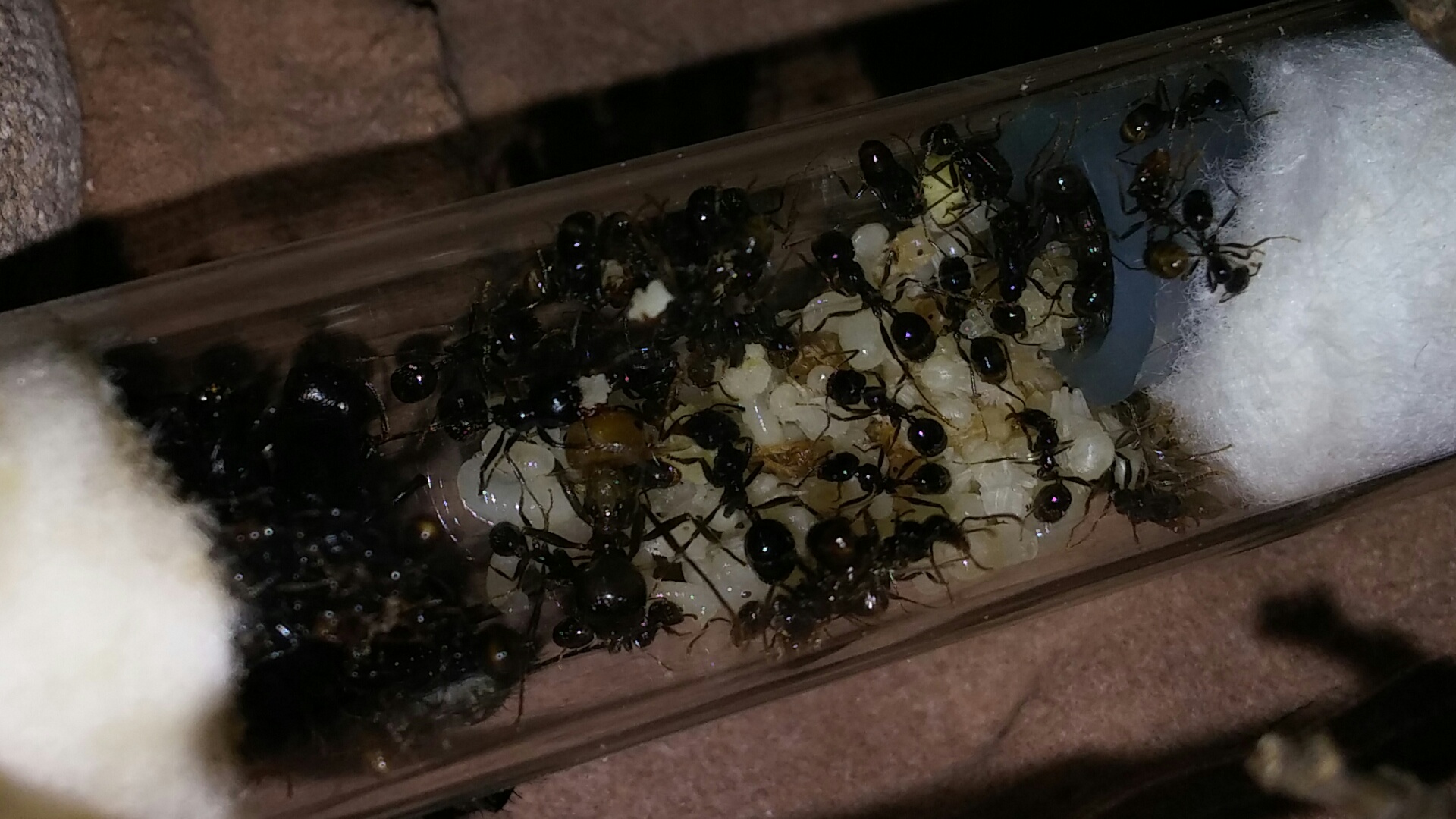 Non convinto ancora dell precedente formicaio ho spostato la provetta in un formicaio nuovo (neppure questo mi convince .-.) comunque dall'ultimo aggiornamento il boom demografico è stato abbastanza evidente! :) queste sono foto del 26 aprile :)