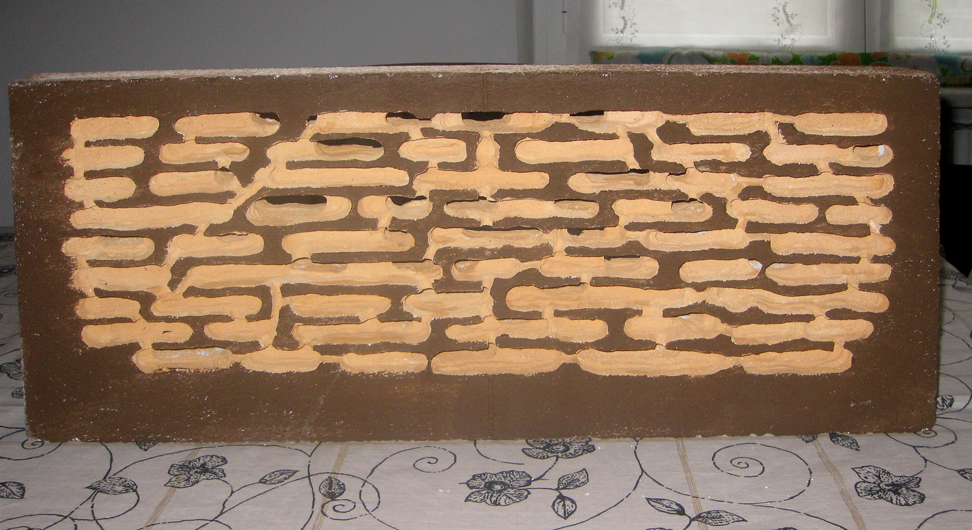 Poi perché le formiche hanno comunque scavato abbondantemente il blocco da 10 cm di spessore, quindi si dovrà tenerne conto e preparare protezioni esterne, ma non sarà lo spessore a scoraggiarle dallo scavare. Il rischio fuga è solo rinviato, non scongiurato. Così ho sacrificato piuttosto lo spessore "pieno” in basso, che è il punto più vulnerabile, portandolo a 4 cm.