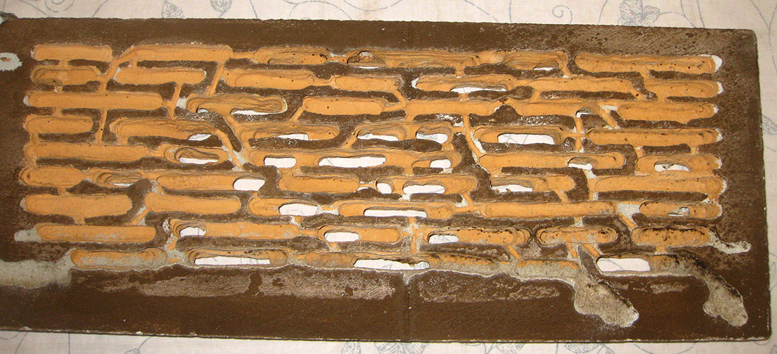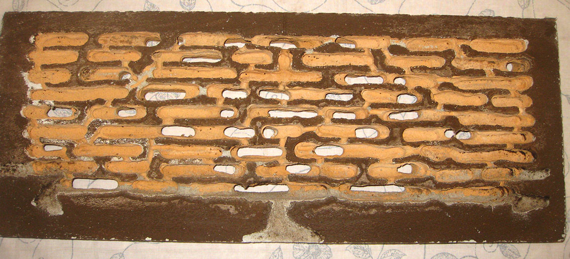 Volevo aggiungere un punto su cui ragionare: ho detto che le formiche portano parecchia ghiaia nelle stanze; questa attività è in netto contrasto con una attività minatoria sviluppatissima! Quest'anno, molto in anticipo sugli altri anni e sugli altri formicai, si sono scavate un sacco di gallerie di fuga, in più direzioni e di dimensioni eccezionali, che hanno trasformato il blocco in un groviera.