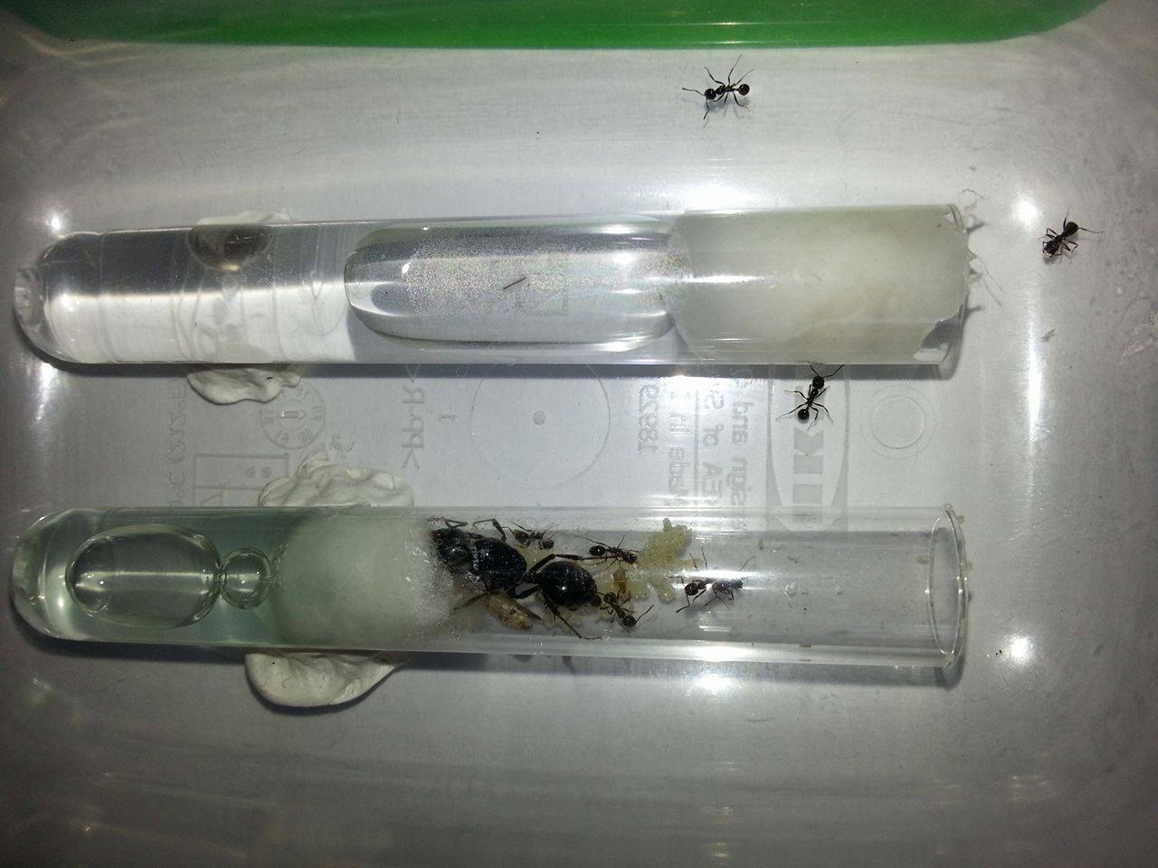 Punto 1: lo spazio in provetta mi sembra sufficiente, purché abbiano spazio per accumulare un po' di semi. In generale le formiche apprezzano gli spazi angusti.
