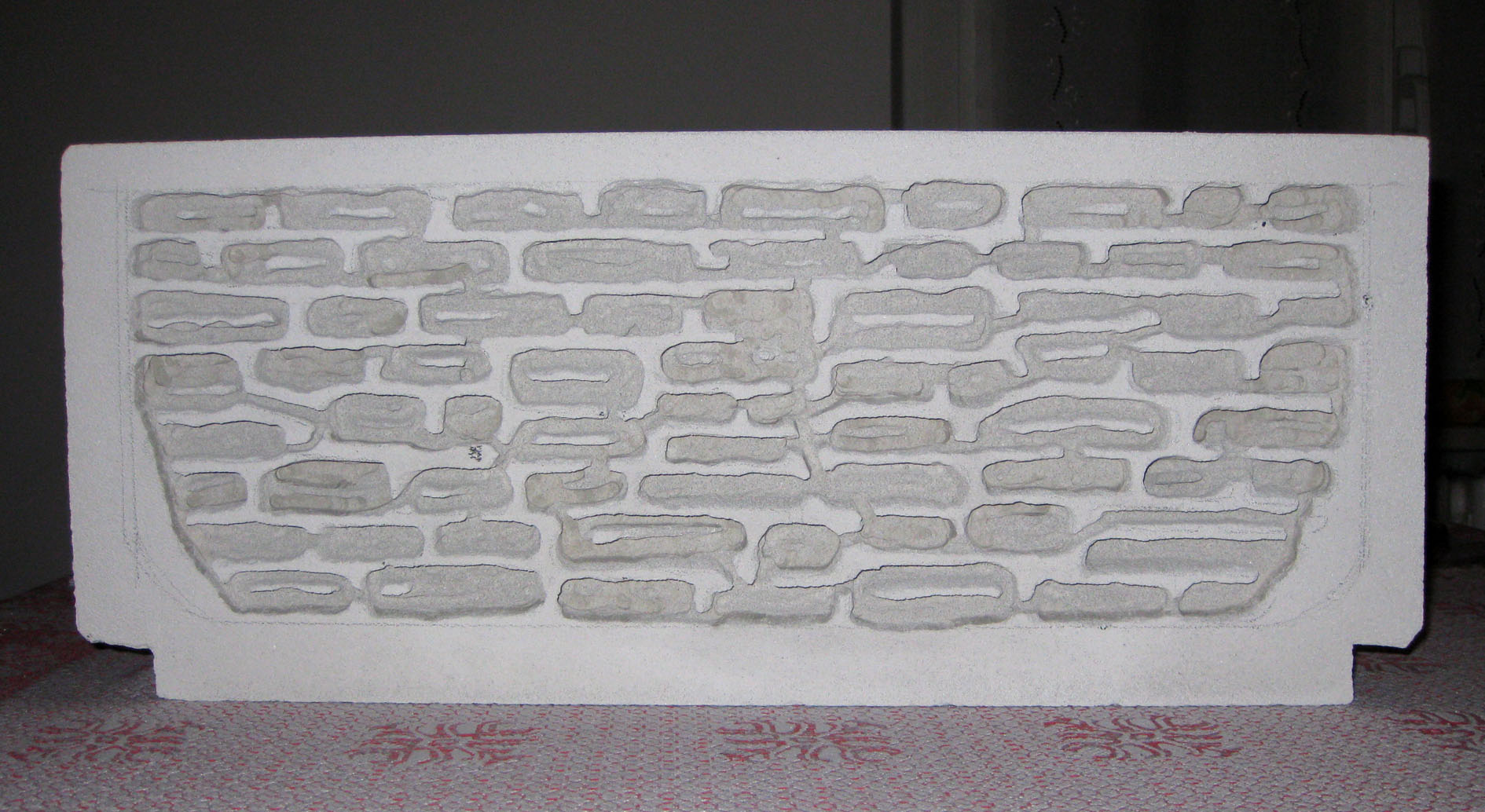 Ho così scavato un blocco da 60 cm x 25, lasciando questa volta più spazio in basso, avendo l'accortezza di "svasare” il disegno delle gallerie negli angoli inferiori. Le pareti delle stanze perimetrali sono state levigate con una piccola mola che rende più difficile individuare punti deboli a cui attaccarsi con le tenaglie. Negli angoli stremi non ci saranno stanze. ma solo gallerie di collegamento.