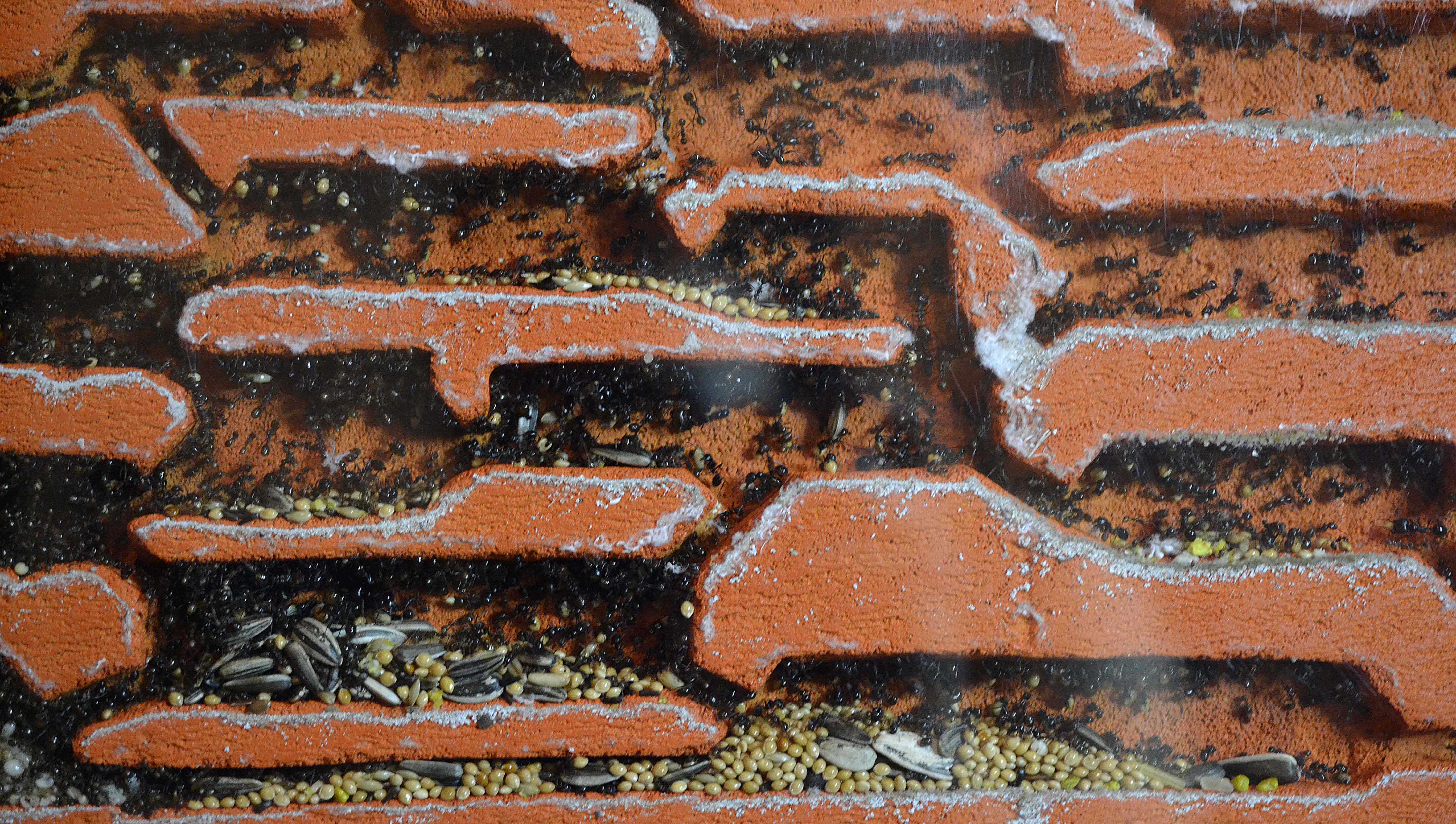In realtà portano i semi nelle tre stanze in basso a destra (la parte più secca del nido). Ad ogni modo erano effettivamente pochi , infatti subito dopo ne ho aggiunta un'abbondante quantità in arena
