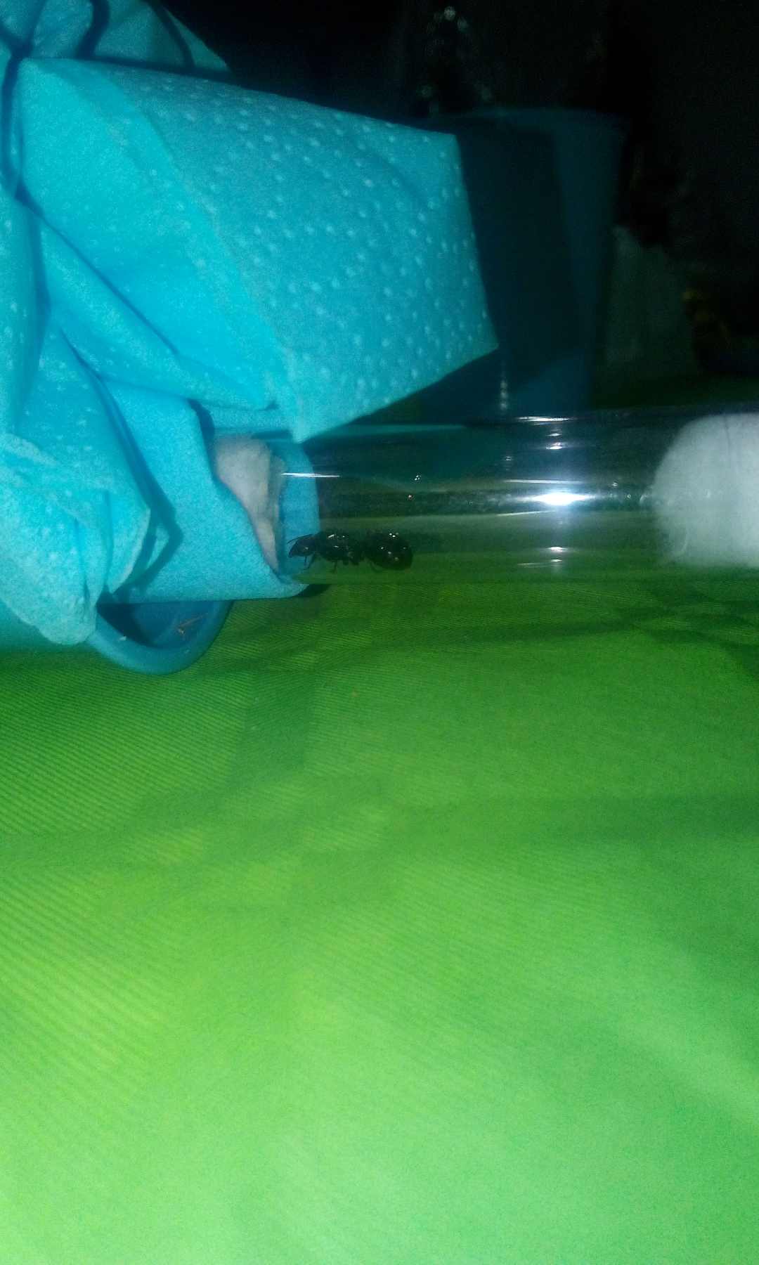 Alla fiera di Longarone acquisto una provetta con una regina di messor e 6 operaie ,3 minori e 3 medie, più alcune larve e uova.