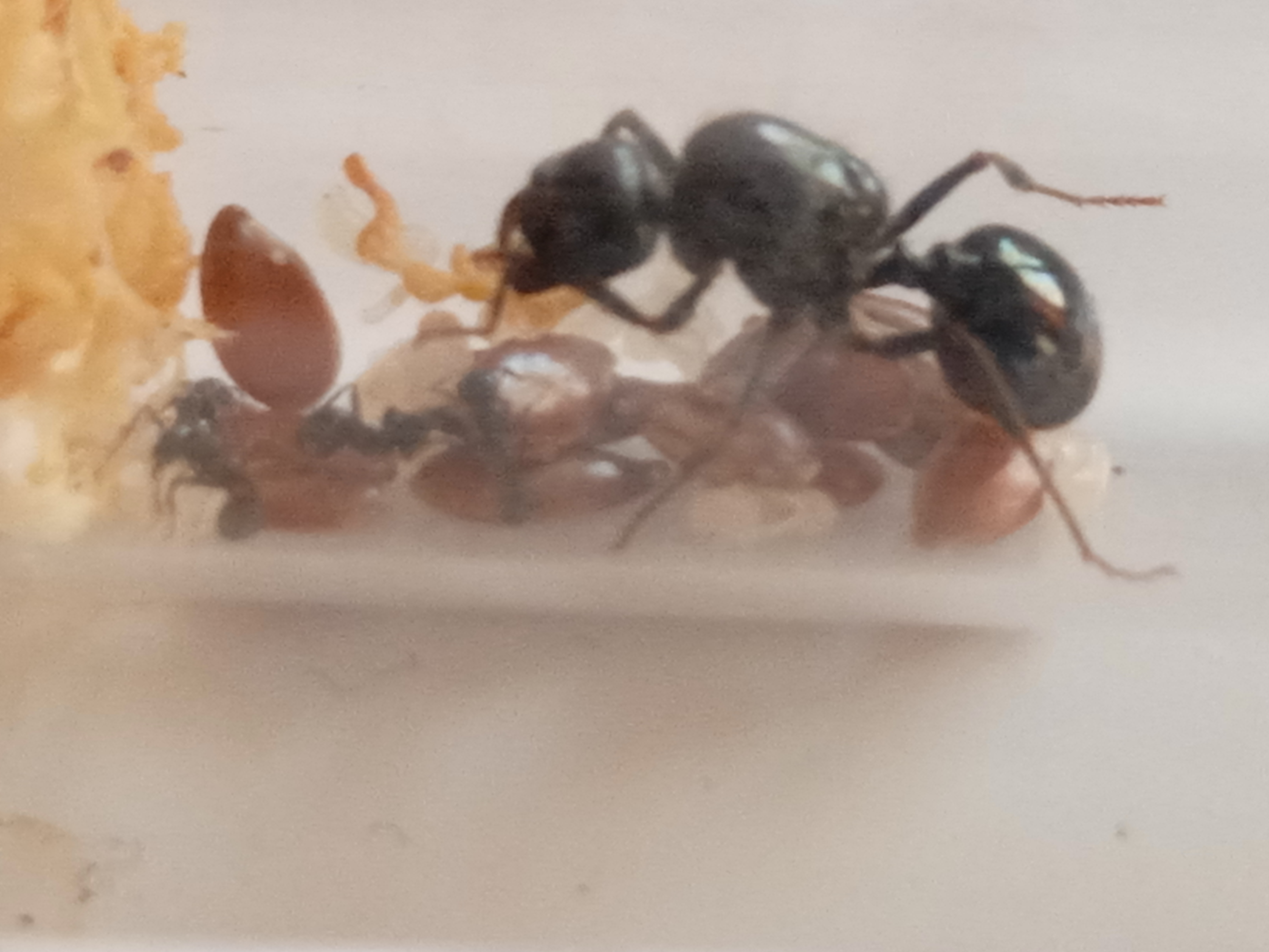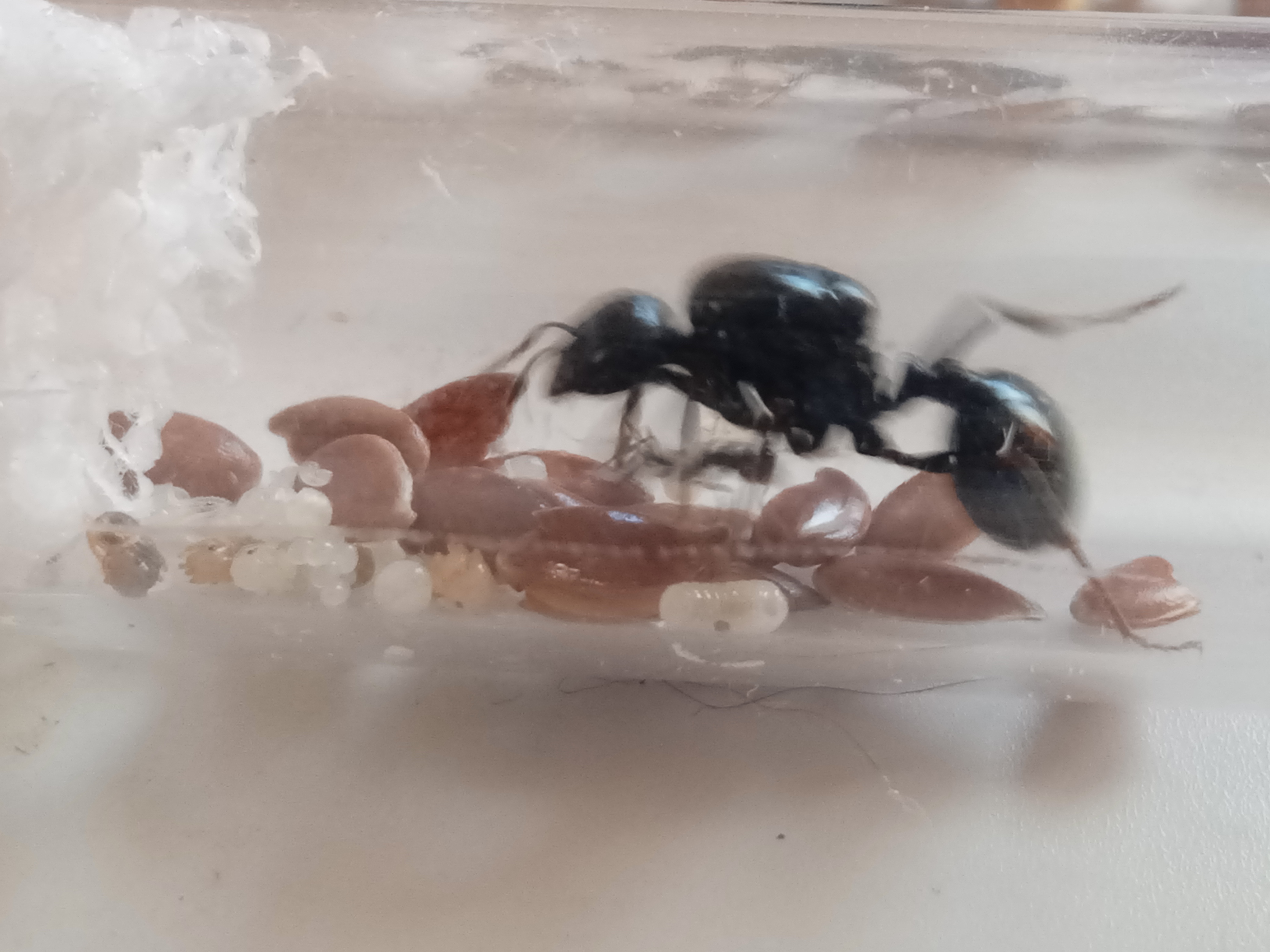 Mettere i semi dentro le provette è stato abbastanza catastrofico, non volevo stressare troppo le regine e operaie. Ma dopo i primi attimi di panico le regine hanno iniziato a tranquillizzarsi e addirittura ad aprire i semi! Sono molto contento dei progressi che stanno facendo, e spero che diventino delle piccole colonie.