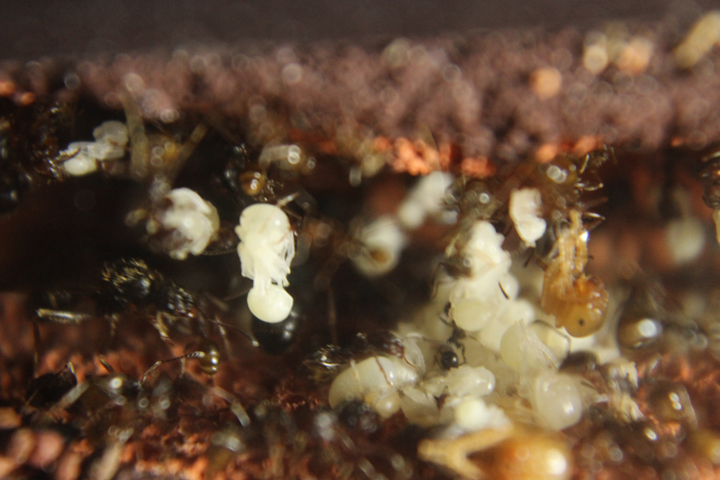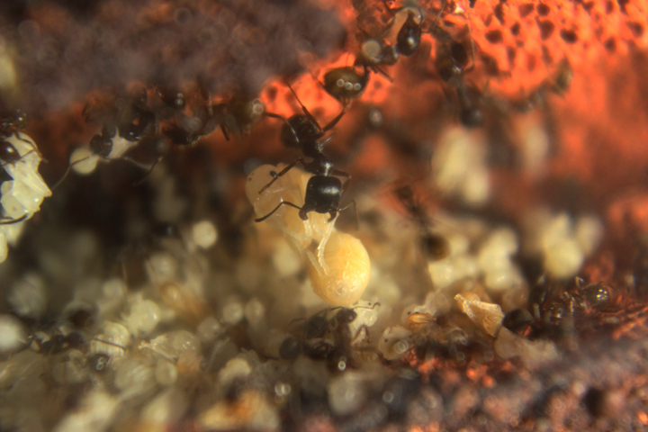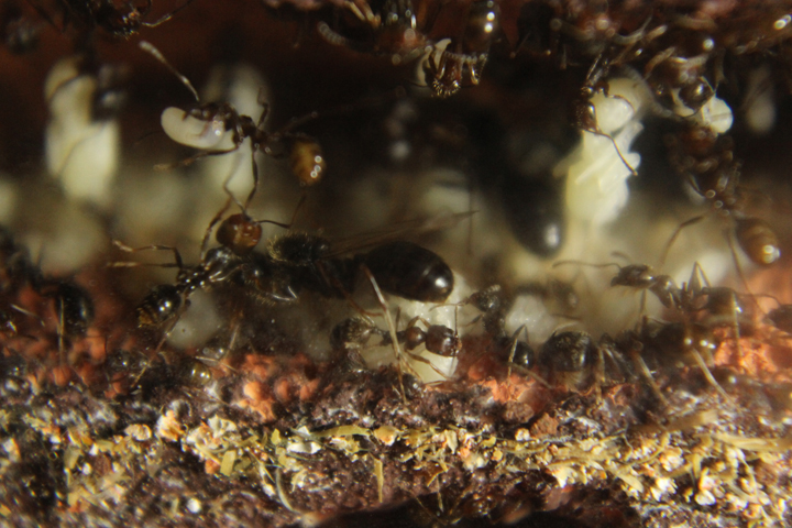 In Myrmica sp. sappiamo che anche le regine fecondate si comportano così (soprattutto se non sono quelle che depongono). Voglio capire se è una cosa che succede anche con questa specie.
