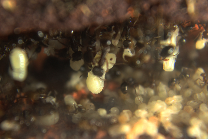 Al momento ha un'abbondante covata ed è ben ambientata nel nuovo formicaio.