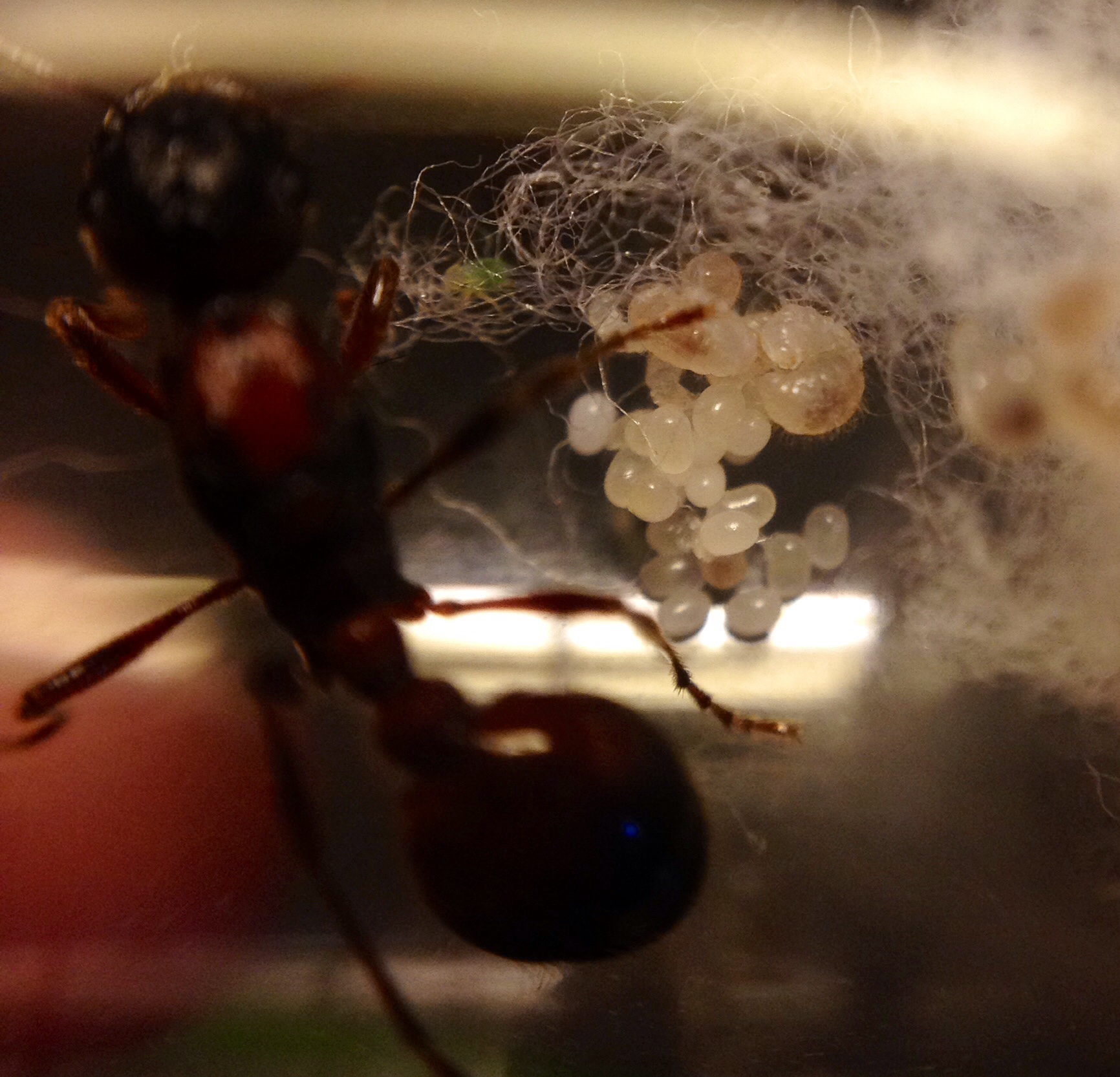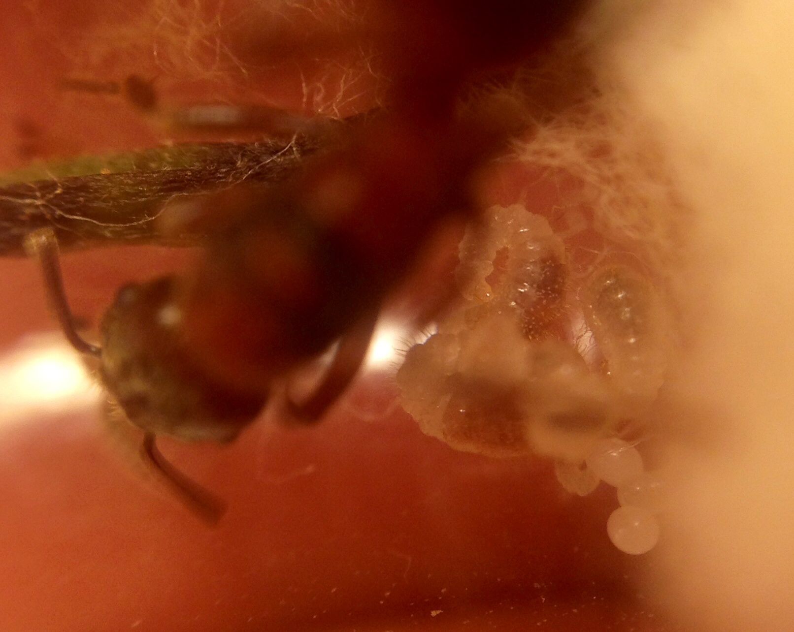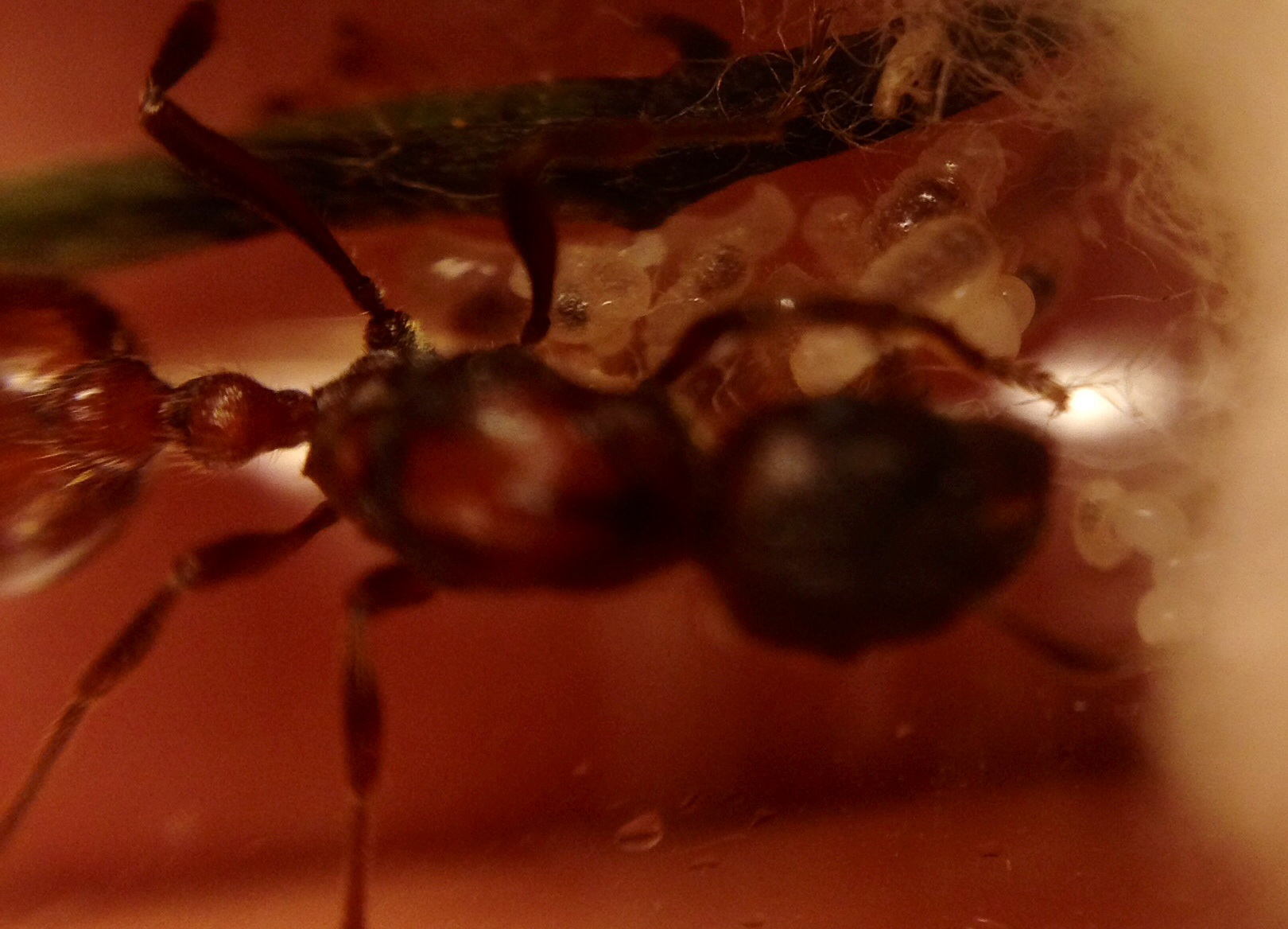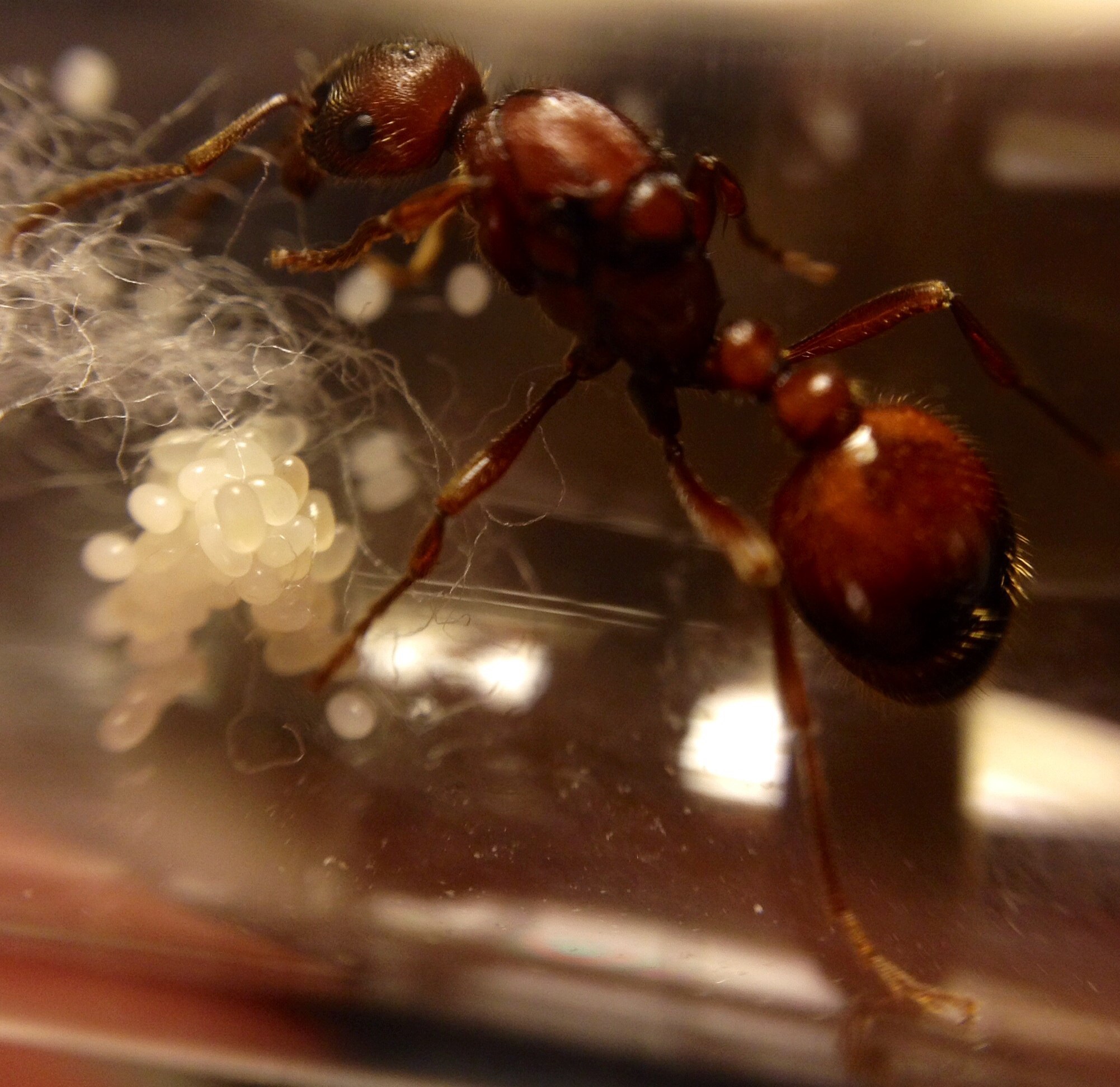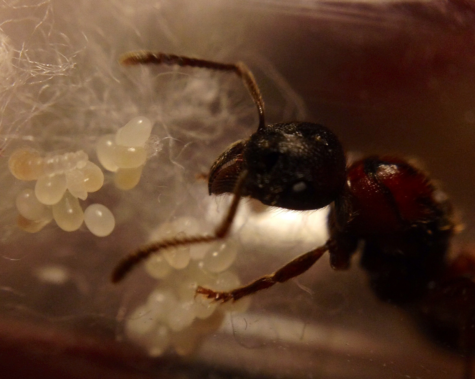 Noto che le regine mantengono un mucchio abbondante di uova tutto assieme mentre alcune vengono tenute separate, non noto grandi differenze fra queste osservando con la lente.