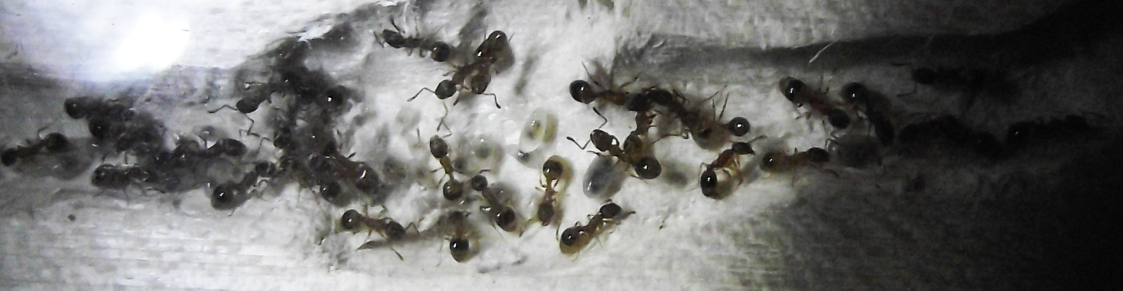 Noto che queste formiche sono molto calme, ma c'è sempre qualcuna di loro in giro, mangiano con piacere sia miele che proteine, non mi ero reso conto, forse per le loro dimensioni, della presenza di uova, ma ora noto varie larve di varie dimensioni, qualcuna abbastanza visibile!