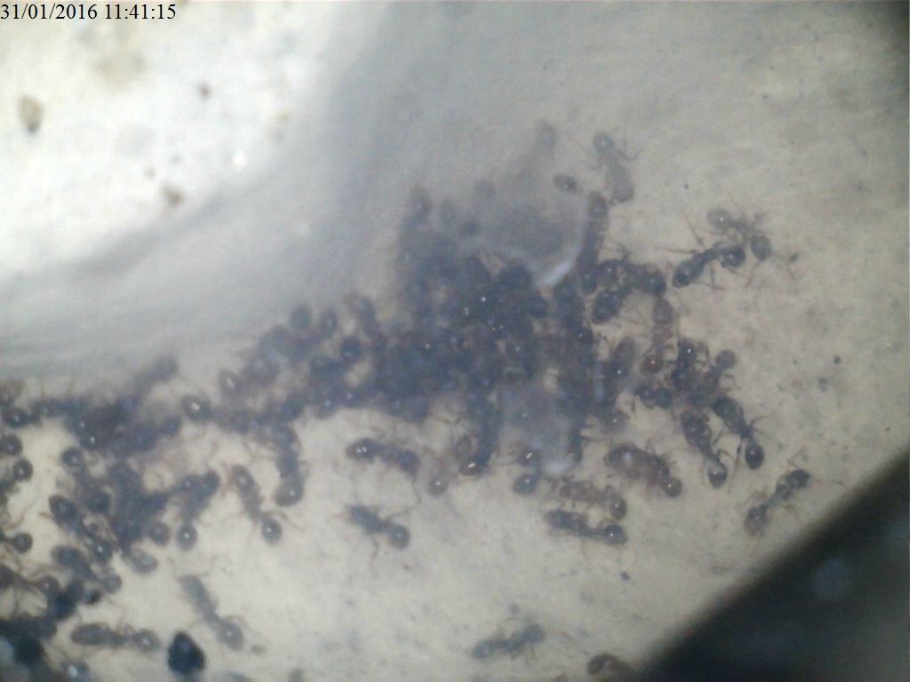 Siccome così operaie si sarebbero disperse per il formicaio, ho fatto traslocare la colonia in provetta. Adesso la sto tenendo riscaldata e finalmente si sta riprendendo a "dovere" (la regina depone poche uova, giallissime (cosa anormale per i Tetramorium), e le operaie cercano di curarle al meglio), con nuove operaie neopigmentate. Naturalmente, questa colonia non andrà in ibernazione, e farò l'impossibile per recuperare le prime formiche che io abbia mai allevato!