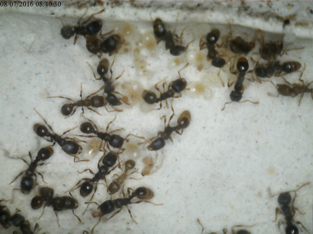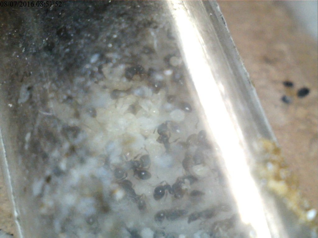 Entrambe le colonie di Tetramorium si sono sviluppate dalla fine dell'ibernazione: la colonia Alpha (che ha avuto una perdita di operaie) ha deposto circa 200 uova ed è stata trasferita nel nuovo nido, di cui farò le foto appena possibile