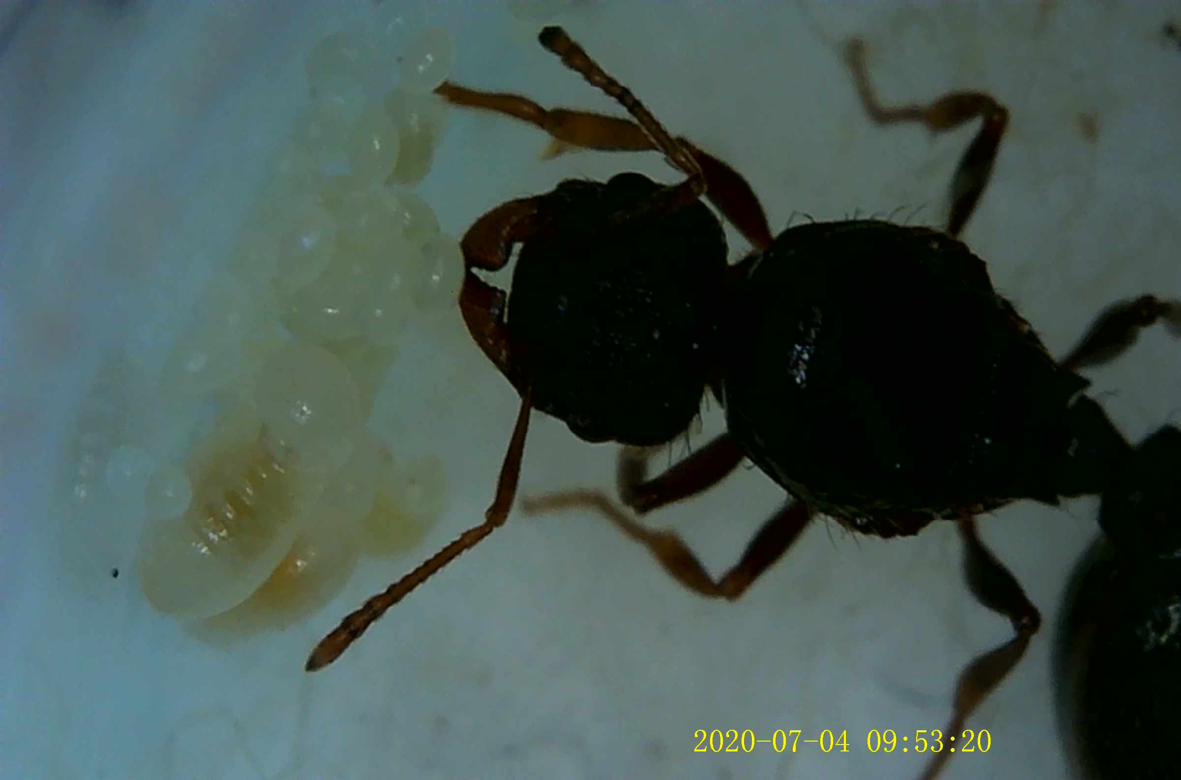 La maggioranza della prole è composta da uova e da poche larve, penso che abbia cominciato a deporre dopo la morte dell'altra regina. L'esperimento per lei termina qui, ora immagino continuerà la sua fondazione normalmente.