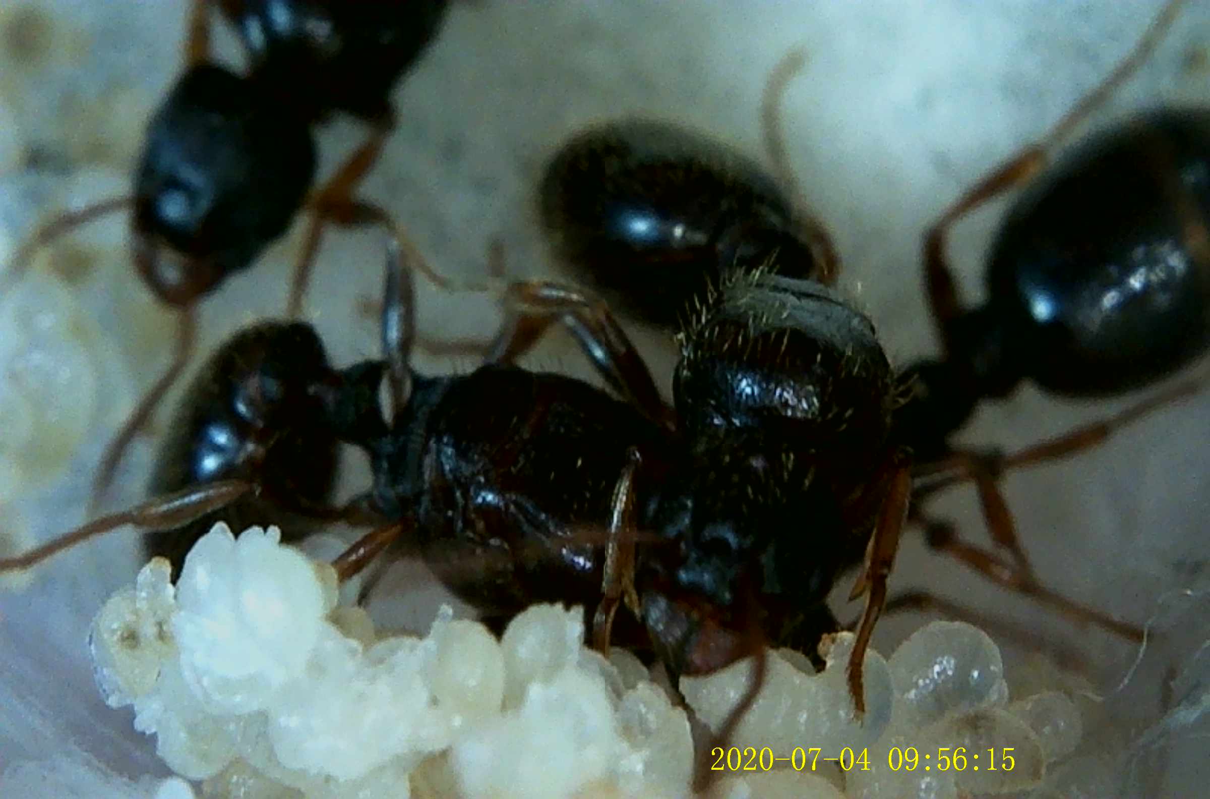 Aggiornamento: non ho ancora notato nulla di strano, se non che quando prendo la provetta in mano una regina schizza verso il tappo per poi goffamente tornare indietro. Le regine sono ancora tutte vive e la colonia sembra crescere bene. Sembrano essere molto timide, ogni volta che fornisco loro cibo scappano e cercano di nascondersi nel cotone, non provano nemmeno a mordere le prede che fornisco loro, solo oggi hanno finalmente consumato una mosca.