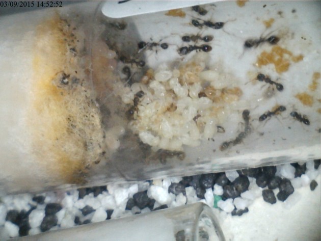 Io per ora sono molto soddisfatto della regina raccolta il 29 giugno che conta 22 operaie, qualche uovo, circa 30 larve e un po' di pupe. Da quante operaie hai aperto la provetta in arena?
