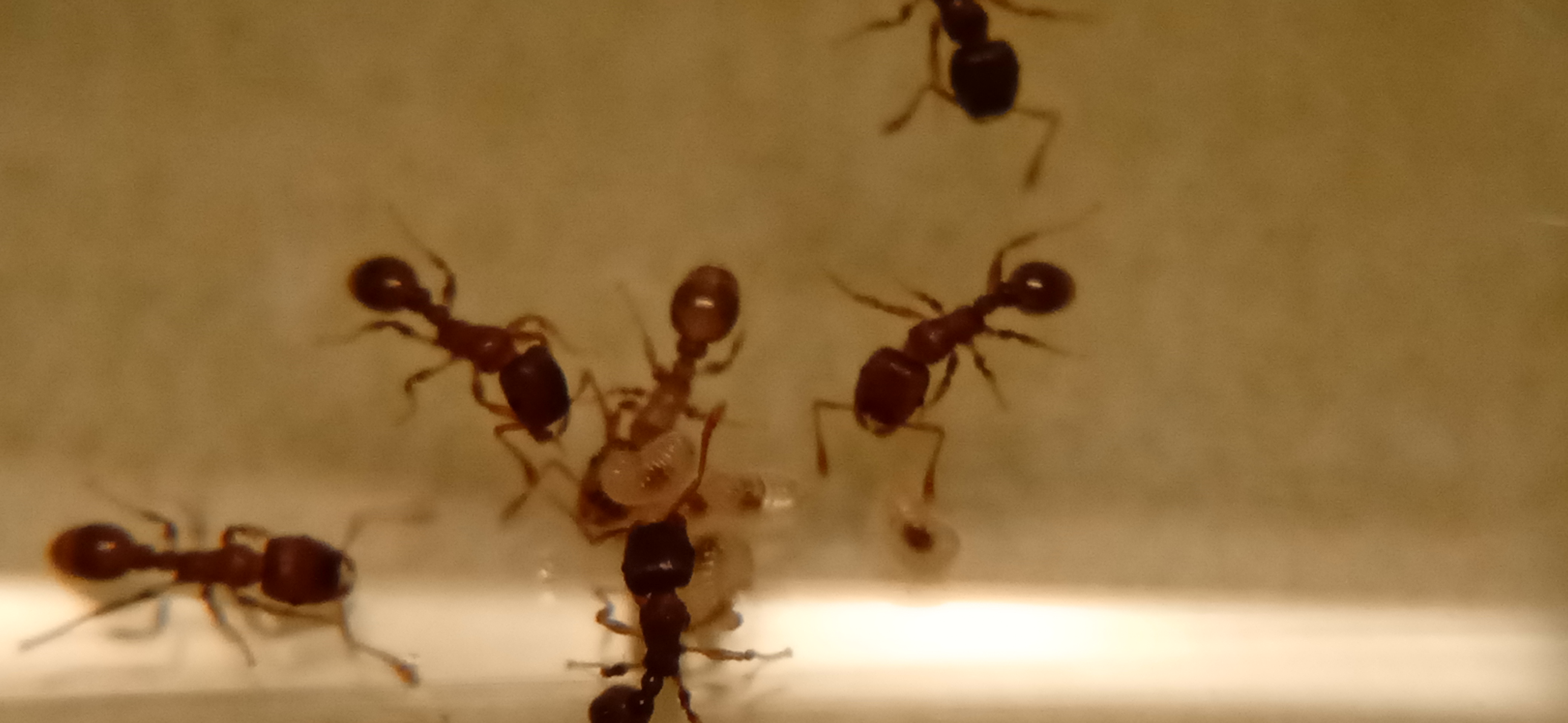 : ho scambiato dalla banca delle regine di Ants Italia una regina di Lasius emarginatus (che avevo raccolto a fine Agosto ma ancora non aveva le prime larve) per una colonietta di Tetramorium caespitum. Sono dovuto andare a Livorno per motivi di famiglia e il viaggio è andato tutto bene, tranne la parte finale. Avevo già notato che la provetta era stata preparata male e si è allagata molte volte ma non è mai successo nulla nè alle operaie nè alla regina. Una volta arrivato a casa però ho notato che la regina stava per annegare!