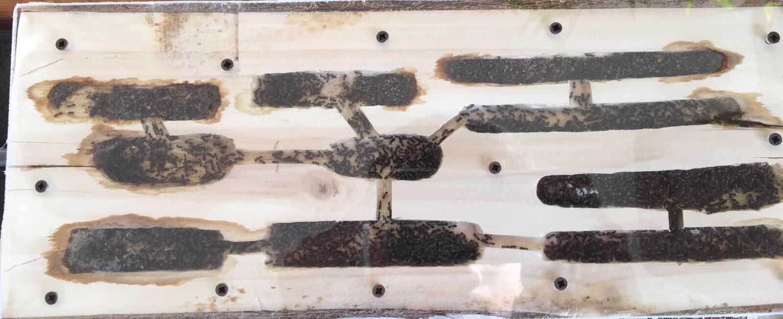 Iniziai subito la costruzione del formicaio in legno di quercia (pianta da loro preferita) e lo progettai molto grande perché ero a conoscenza che la colonia, dopo un anno, avrebbe raggiunto grossezze considerevoli.