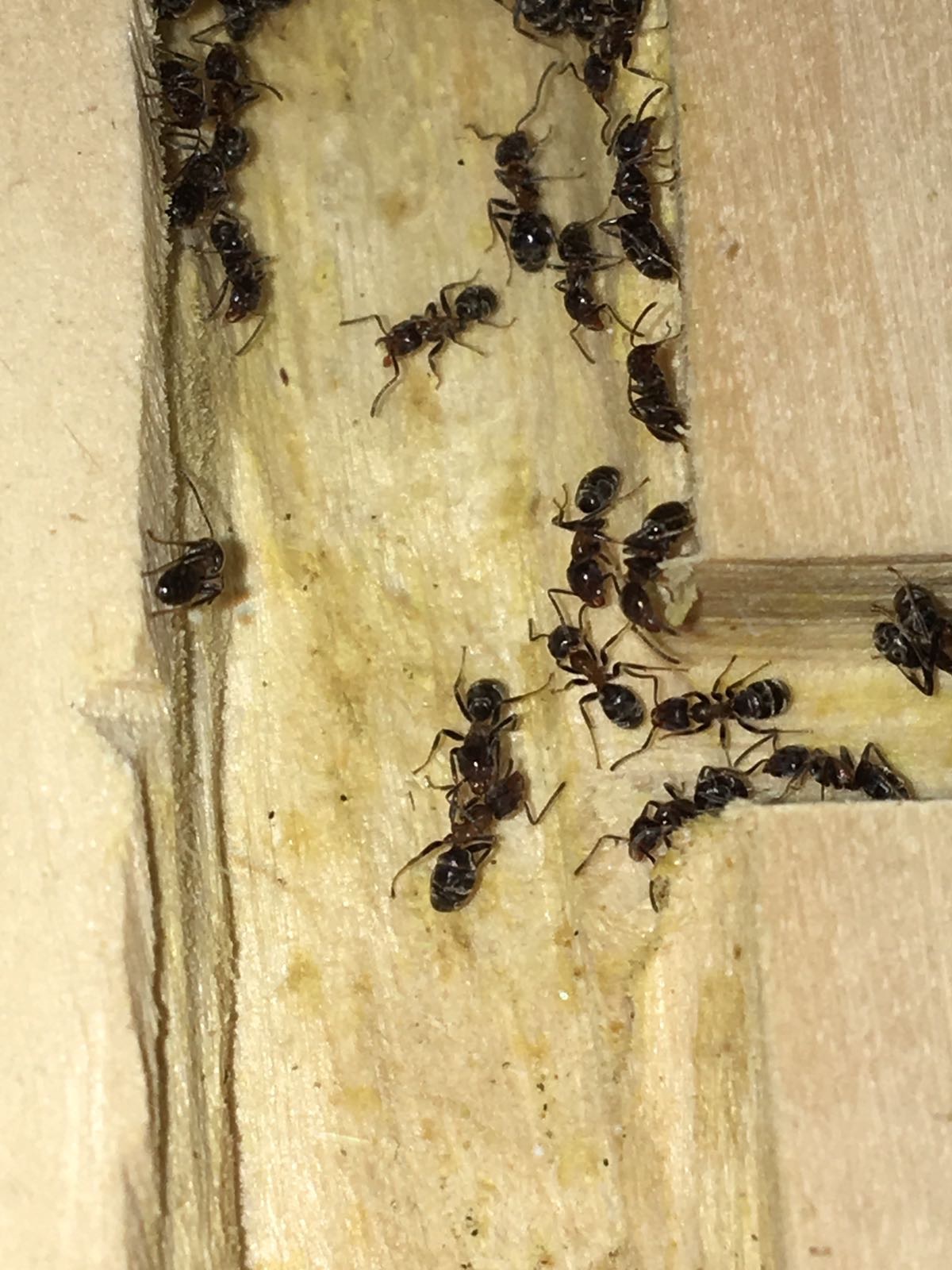 Riguardo invece alle piante che scelgono è ancora sconosciuto per me. In tutti i siti che ho letto viene detto che trattasi di una specie “salvavita” per la pianta poiché utilizzano solo il legno secco o intaccato da parassiti (es. Cerambix cerdo nella quercia) eliminandoli tutti, pertanto la pianta è protetta. Invece nei pioppi di zio ho constatato che comunque alla pianta un piccolo danno lo arrecano comunque, perché è vero che la proteggono da parassiti del legno e fogliari, ma non dagli afidi, infatti vi sono dei “pidocchi” nella corteccia che sono accuratamente protetti e custoditi. Altro elemento sconosciuto (per me) è la tipologia di regina che adottano, ossia non sono riuscito a capire se è una specie monoginica o poliginica, in quanto dalla crescita dovrebbe essere monoginica (la famiglia cresce costantemente) ma la sottofamiglia (dolichoderinae) mi suggerisce di dire che sia poliginica poiché essa accomuna comunque specie poliginiche (Tapinoma erraticum, T. nigerrimum, ecc.).