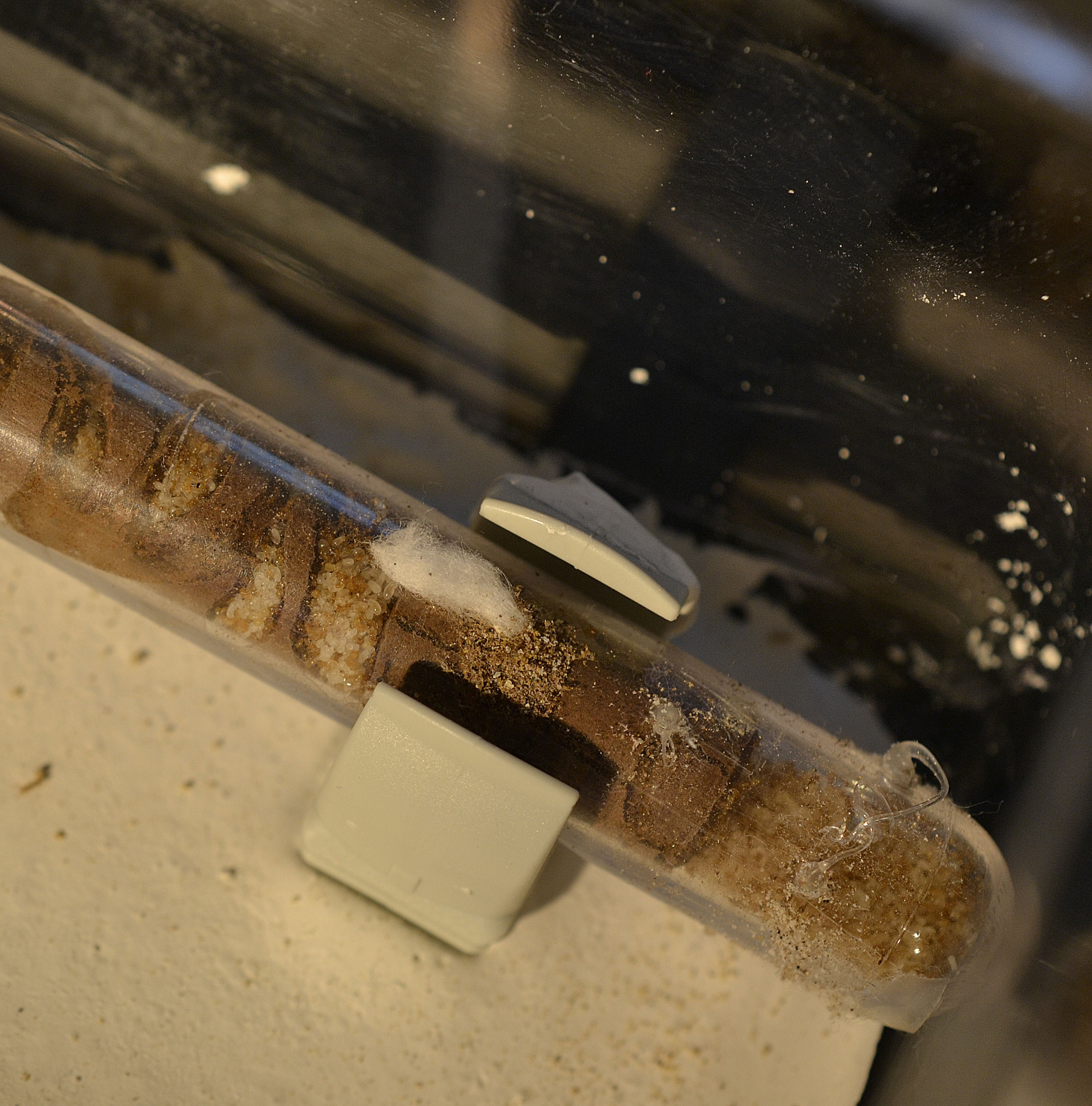 P.s. come si può notare, le foto della provetta/nido non sono bellissime ma purtroppo da quella posizione faccio fatica a farne di decenti (altro motivo per trasferirle). Dal vivo la popolazione/covata risulta decisamente più abbondante, soprattutto sul fondo della provetta. Bisogna infine tenere conto dei numerosi tunnel più 'nascosti' scavati dalle operaie stesse, che potrebbero contenere altra parte della colonia.