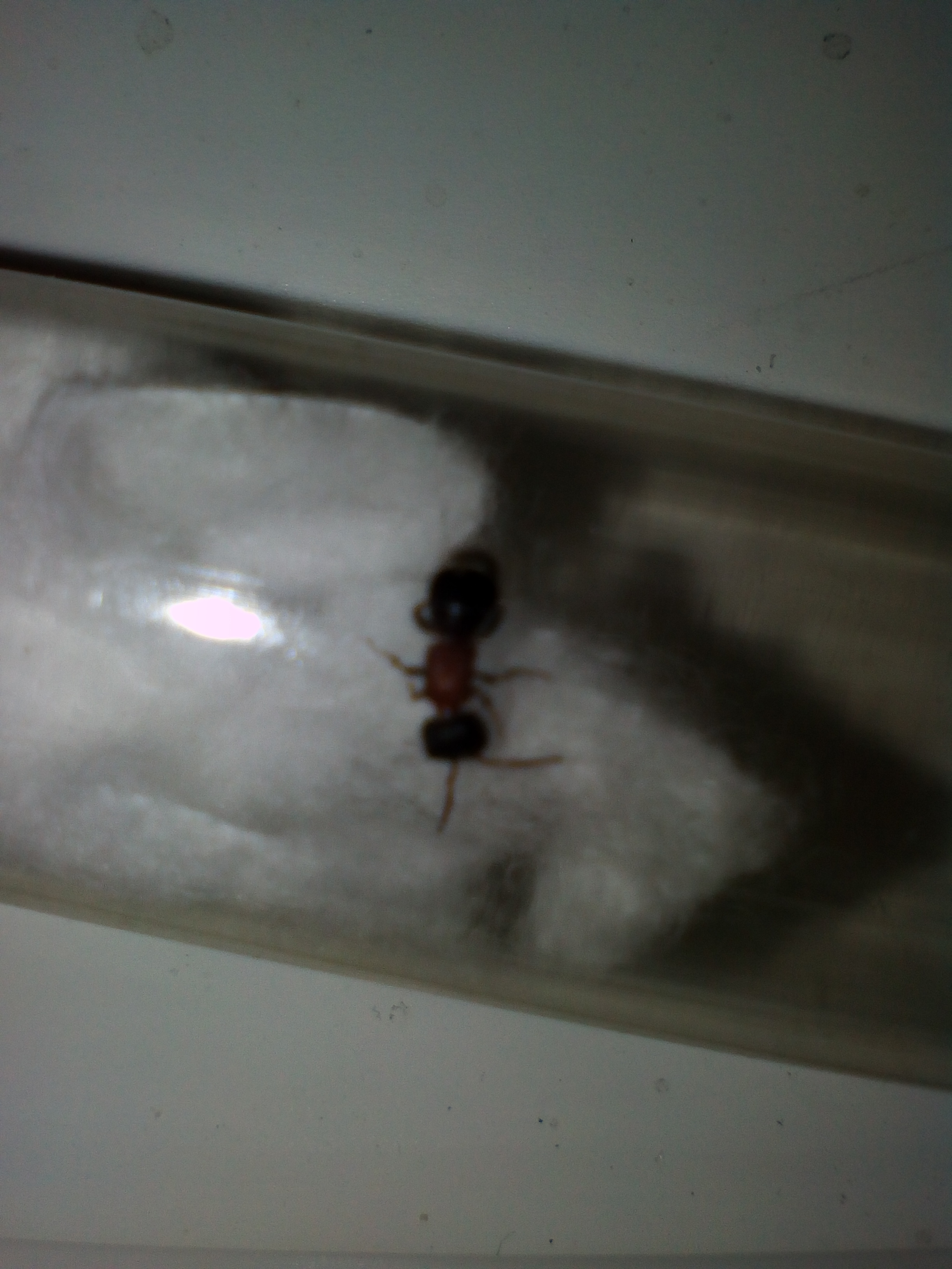Buongiorno volevo cominciare ad allevare formiche, non l'ho mai fatto ma ho letto varie cose qui sul forum e quindi sono andato a cercare regine. Credo di averne trovata una ma non ne sono sicuro, ha la testa nera, l'addome nero e invece il segmento centrale rosso. Credo che sia una regina perchè era molto più grande delle operaie (p.s. non ha le ali ma ad occhio nudo non riesco a vedere se ha le cicatrici) e aveva gli stessi colori (quindi escludo che sia di un altra specie). Ho predisposto un tubetto con acqua cotone e altro cotone in modo che possa respirare. Volevo sapere da qualcuno più esperto di che specie è e se potrebbe essere la regina, poi continua a cercare di scappare mentre da molti video che ho visto le regine catturate stanno comode nel tubetto a bere tranquille. Grazie in anticipo per l'aiuto.