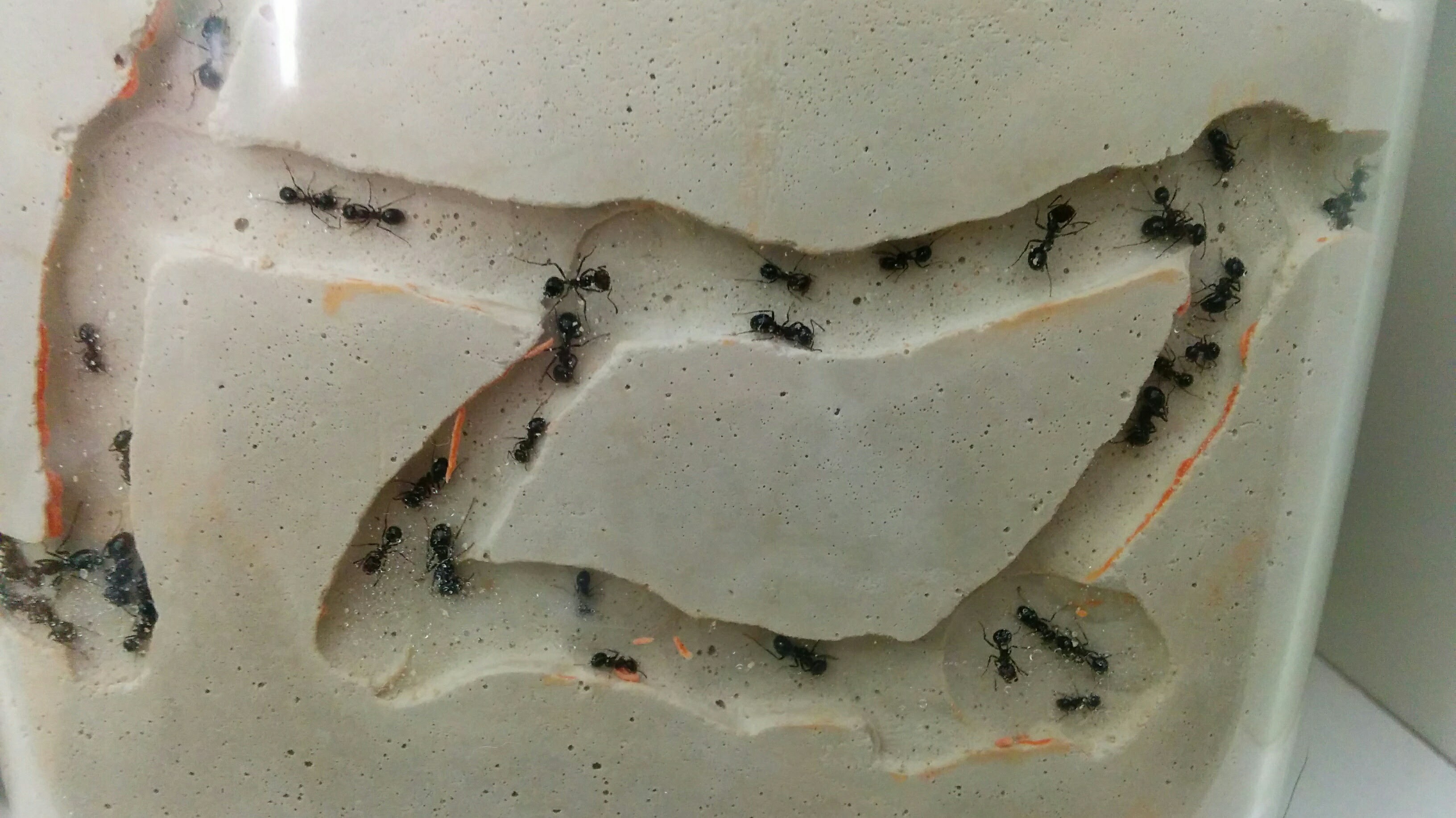 2) Alcune formiche rimangono nell'area di foraggiamento lontane dalle altre e non entrano nella tana per nessun motivo, evitano proprio di entrarci a qualunque costo, non capisco il motivo!